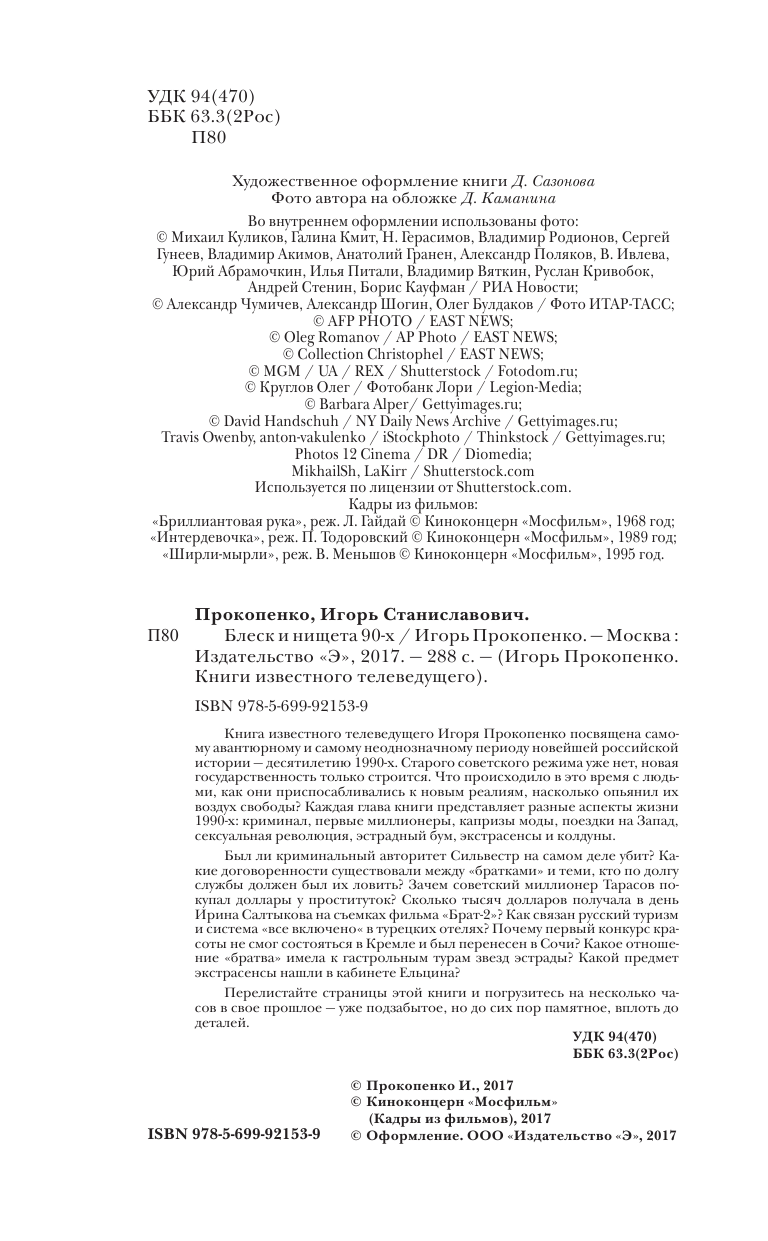 Блеск и нищета 90-х. Не могла я пройти мимоэой книги! Я же в 1991 году как раз школу закончила и в Москву приехала в институте учиться. Все эти события я помню- было много и плохогои хорошего. Захотелось прочитать и вспомнить, тем более Игорб Прокопенко умеет найти эдакое, и стиль у него мне нравится. Меня даже на слезы пробило!