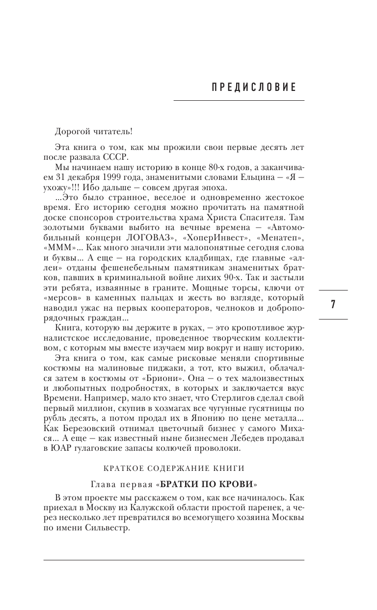 Был ли криминальный авторитет Сильвестр на самом деле убит? Какие договоренности существовали между "братками" и теми, кто по долгу службы должен был их ловить? Зачем советский миллионер Тарасов покупал доллары у проституток? Сколько тысяч долларов получала в день Ирина Салтыкова на съемках фильма "Брат-2"? Как связан русский туризм и система "все включено" в турецких отелях? Почему первый конкурс красоты не смог состояться в Кремле и был перенесен в Сочи? Какое отношение "братва" имела к гастрольным турам звезд эстрады? Какой предмет экстрасенсы нашли в кабинете Ельцина?