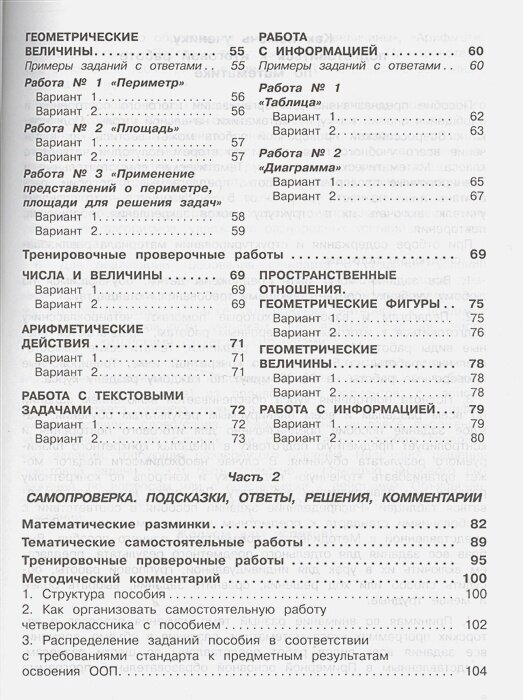 Пособие содержит образцы выполнения типовых заданий по разным разделам курса - "Числа и величины", "Арифметические действия", "Работа с текстовыми задачами", "Пространственные отношения. Геометрические фигуры", "Геометрические величины", "Работа с информацией", а также ответы и комментарии к решениям.