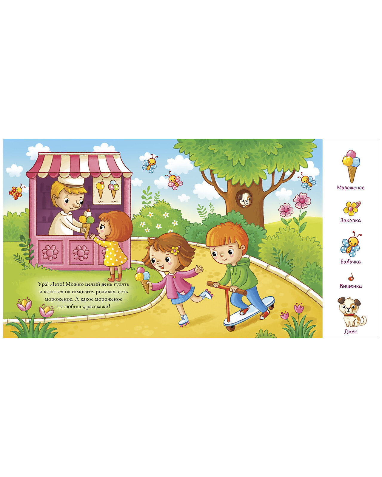 Летом мы катаемся на велосипеде и едим мороженое, весной - кормим уточек в пруду, зимой - несемся с горки на лыжах или на санках, а осенью гуляем и шуршим желтыми листьями.
