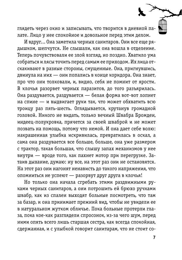 Очень хорошая книга. Не могу сказать, что её надо прочитать абсолютно всем, но уверен, найдется множество читателей у которых она оставила отклик в душе. Хотя, лично мне, больше понравился роман К. Кизи "Песнь Моряка". Может быть эффект размылся из-за просмотренного одноимённого фильма. Собственно, именно из-за фильма я прочитал этот роман и увлекся творчеством писателя. В каком-то давнем интервью я услышал, что герой в романе, в отличии от экранного, не такой уж однозначный и хороший, а медсестра в книге не такая уж и гадюка, какой её подал режиссёр Милош Форман. Вот мне и стало интересно, чем же так отличаются роман и кино адаптация. На мой взгляд режиссёр очень точно передал суть книги и общее настроение, да и в целом я нашёл мало отличий, это касается и персонажей. Ощущение такое как-будто одну и ту же историю рассказали два разных человека, но обе интересные и отличаются только в деталях. Не хватило только галлюциногенных видений индейца (когда читал эти моменты не вольно вспоминал Терри Гильяма с его "Бразилией" и "12 обезьян"), а в романе действие ведётся именно от его лица.