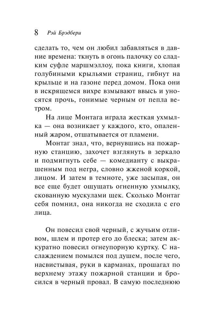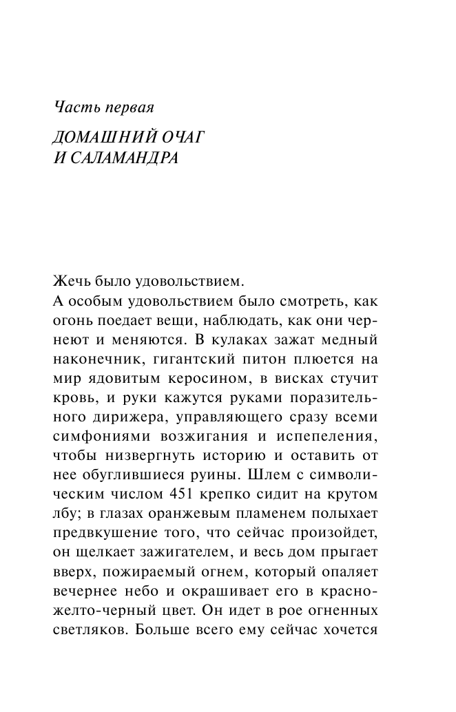А захватывающая воображение история Рэя Брэдбери продолжается. В ней сплелись столько мыслей, эмоций и поступков, что невозможно оторваться от книги. Сюжет развивается все быстрее, страсти накаляются. Но сгорит ли герой в пылу распаленного им пожара или зажжет сердца и умы людей жаждой знаний? Это нам и предстоит выяснить, дочитав историю до последних страниц. Нам-то закон не запрещает.