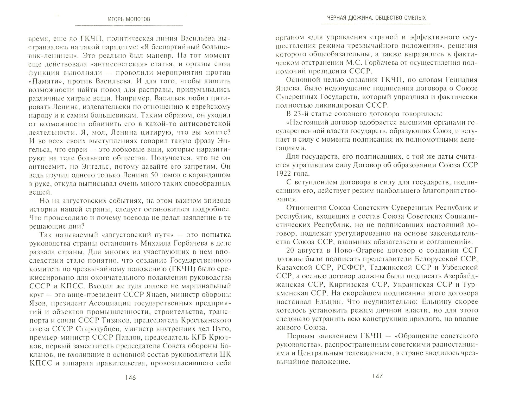 Все мы живём в обществе,социуме,ведомые некоей государственной машиной.НПФ"Память"как её противопоставление.Возможно,книга И.Молотова единственная,рассказывающая о "Памяти" как о мощном общественно-политическом движении,носит не только справочный характер.Она в том числе и об отдельных личностях,лидерах, духе самого движения,демонстрации мировоззренческих взглядов,спаянности членов фронта или их фракций.В целом -о истории зарождения,целях и задачах,действиях,в частности,во времена августовского путча и сентября-октября 1993г.В связи с этим неожиданное (для меня) раскрытие темы масонства,черносотенства,сионизма,фашизма,русского православия,самодержавной власти,применения формы и атрибутики.Работа аргументированная, интересная,местами спорная.Понимаешь,что по прошествии времени уходят эмоции и остаётся некое рациональное зерно.У вдумчивого читателя под воздействием полученной информации может поменяться как взгляд на определённые обстоятельства,так и отношение и к отдельным личностям,и к событиям в целом.Сам автор, особенно не выпячивая,проявляет свои симпатии к лидеру движения Д.Д.Васильеву.И есть за что!Здесь не только "сухое"раскрытие темы.В целом И.Молотов не только поясняет суть возникающих вопросов, но и даёт на них развёрнутый ответ,на основе чего складывается собственное мнение у каждого читающего.