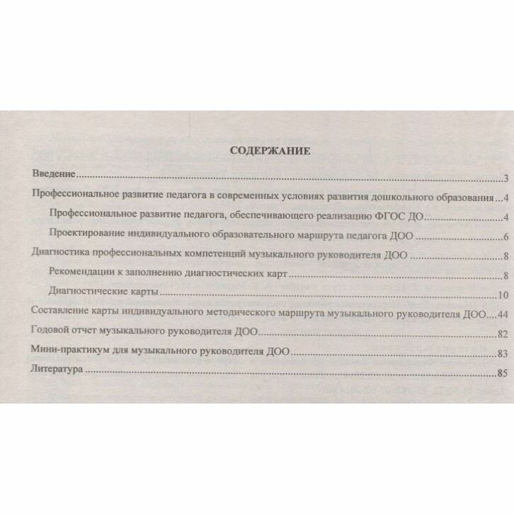В книжном пособии представлен журнал для проектирования индивидуального образовательного маршрута (ИОМ) музыкального руководителя ДОО как модели построения системы саморазвития профессиональных компетенций, профессионального и карьерного роста, повышения методической грамотности, мобильности, мотивации, разработанной в соответствии с требованиями ФГОС ДО, Профессионального стандарта педагога, позволяющей выбрать необходимые для эффективной работы технологии методической поддержки ИОМ. Предложены этапы составления маршрута, диагностические карты профессиональной компетенции музыкального руководителя, карты ИОМ.