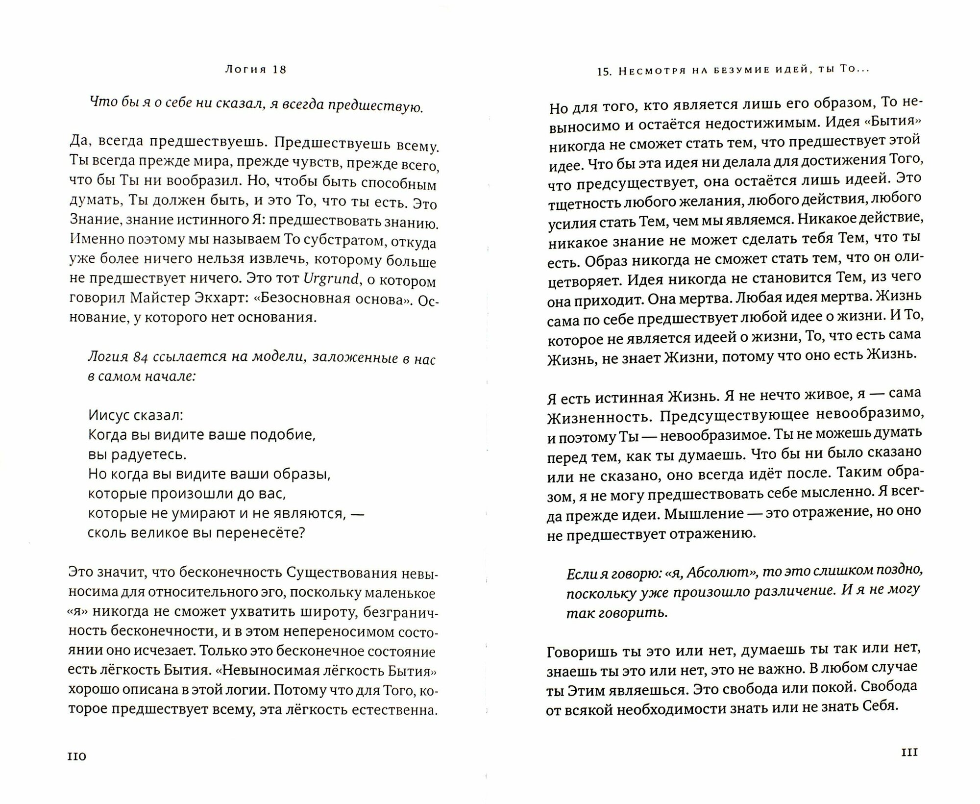 Не рекомендую. Редкостная белиберда. Речения Иисуса из евангелия перемежаются блаблабла в терминах неоадвайты. Связь между первым и вторым отсутствует чуть более, чем полностью, напоминает политические дебаты, агитация за концепцию свободы от концепций, безразлично на каком материале. Ошо Раджниш тоже комментировал Евангелие от Фомы и даже он был ближе к предмету чем «Карл!» Худшая книга Ренца из известных мне.