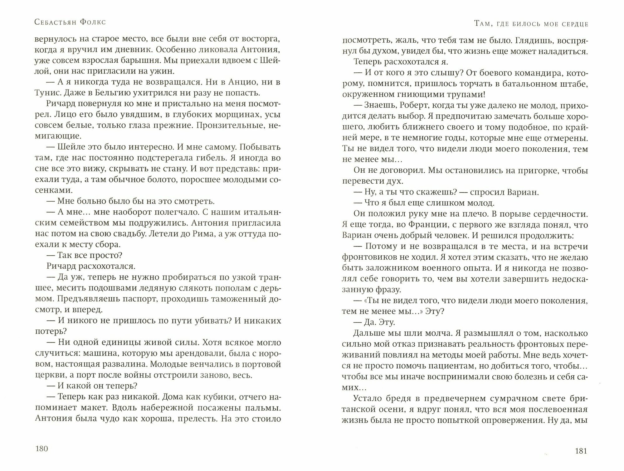Многие говорят, что главный герой последнего романа Себастьяна Фолкса "Там, где билось мое сердце" Роберт Хендрикс - сухарь - человек, разочарованный циник и вообще не слишком положительный герой. Так могут говорить только те, кто не читал романа. Потому что стоит вам прочесть первые пару десятков страниц, как вы поймете, что весь показной цинизм Хендрикса - не больше чем защитная броня очень ранимого человека, покалеченного войной, работой в трудном психоневрологическом отделении (самый сильный момент романа, когда Фолкс показывает нам, что на самом деле происходит в голове человека, больного шизофренией) и трудной любовью. После этого вы полюбите главного героя и его исповедь так же, как полюбил его Фолкс - иначе он бы не написал о нем такие пронзительные, такие честные строки. В очередной раз восхищена умением Фолкса понимать трудные характеры, докапываться до нежной и беззащитной сути.