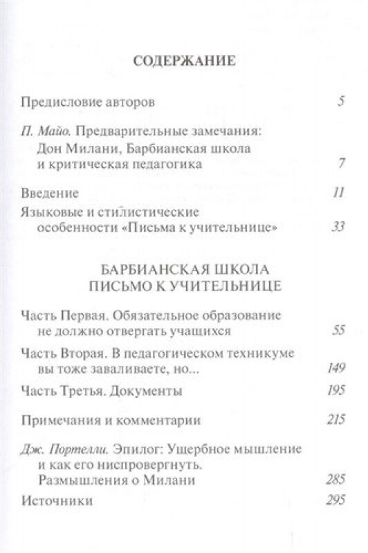 С 1954 по 1967 год в глухой итальянской деревне Барбиане работала уникальная "школа одного учителя", которую создал местный священник Лоренцо Милани. Свой пасторский долг он видел прежде всего в том, чтобы дать детям из крестьянских семей действенное орудие борьбы за равноправие - владение языком и умение излагать свои мысли. Кратким итогом его педагогической деятельности стало написанное им вместе с учениками "Письмо к учительнице" - манифест того, какой должна (и какой не должна) быть школа. "Письмо к учительнице", снабженное подробными комментариями современных исследователей опыта Лоренцо Милани, и история его жизни публикуются по-русски впервые.