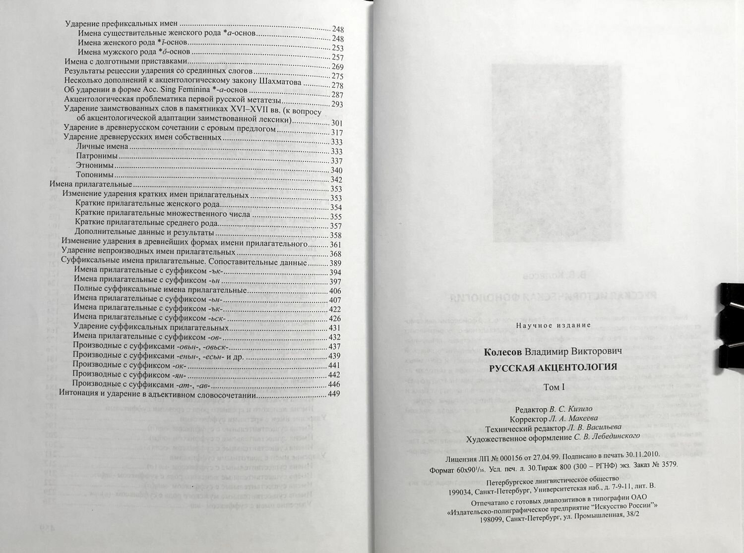 Русская акцентология. В 2-х томах (Колесов Владимир Викторович); Филологический факультет СПбГУ, 2010