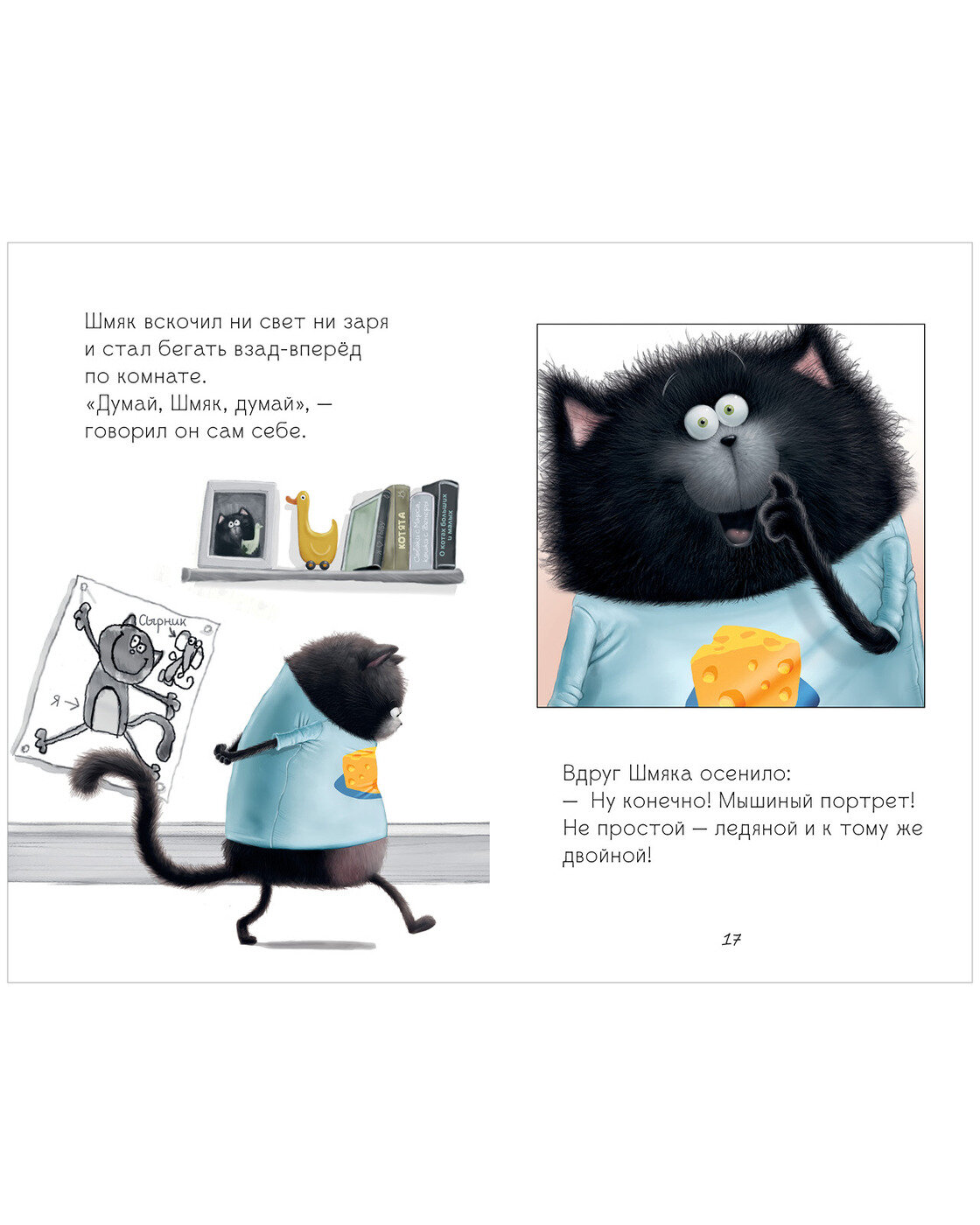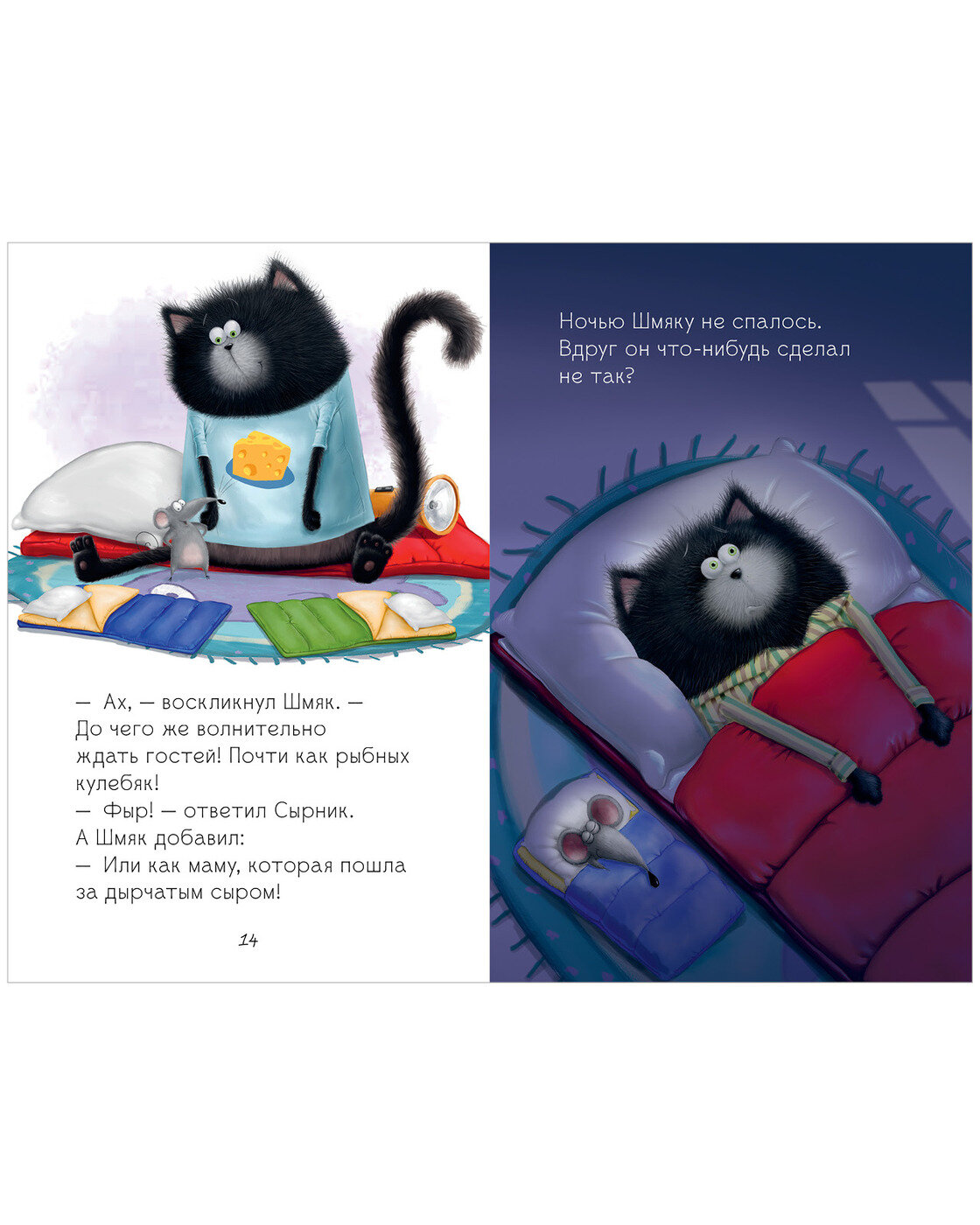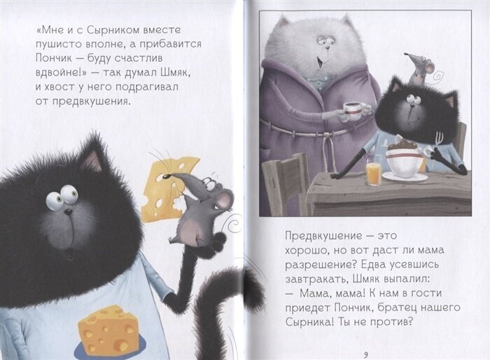 Книга понравилась, как и все книги из этой серии. Сын 7лет улыбался, когда читал её. Эта книга, конечно, продолжение.. Для первого знакомства со Шмяком и Сырником надо выбирать другие, а ещё лучше несколько) И сразу станет понятно, почему котёнок так себя повёл.