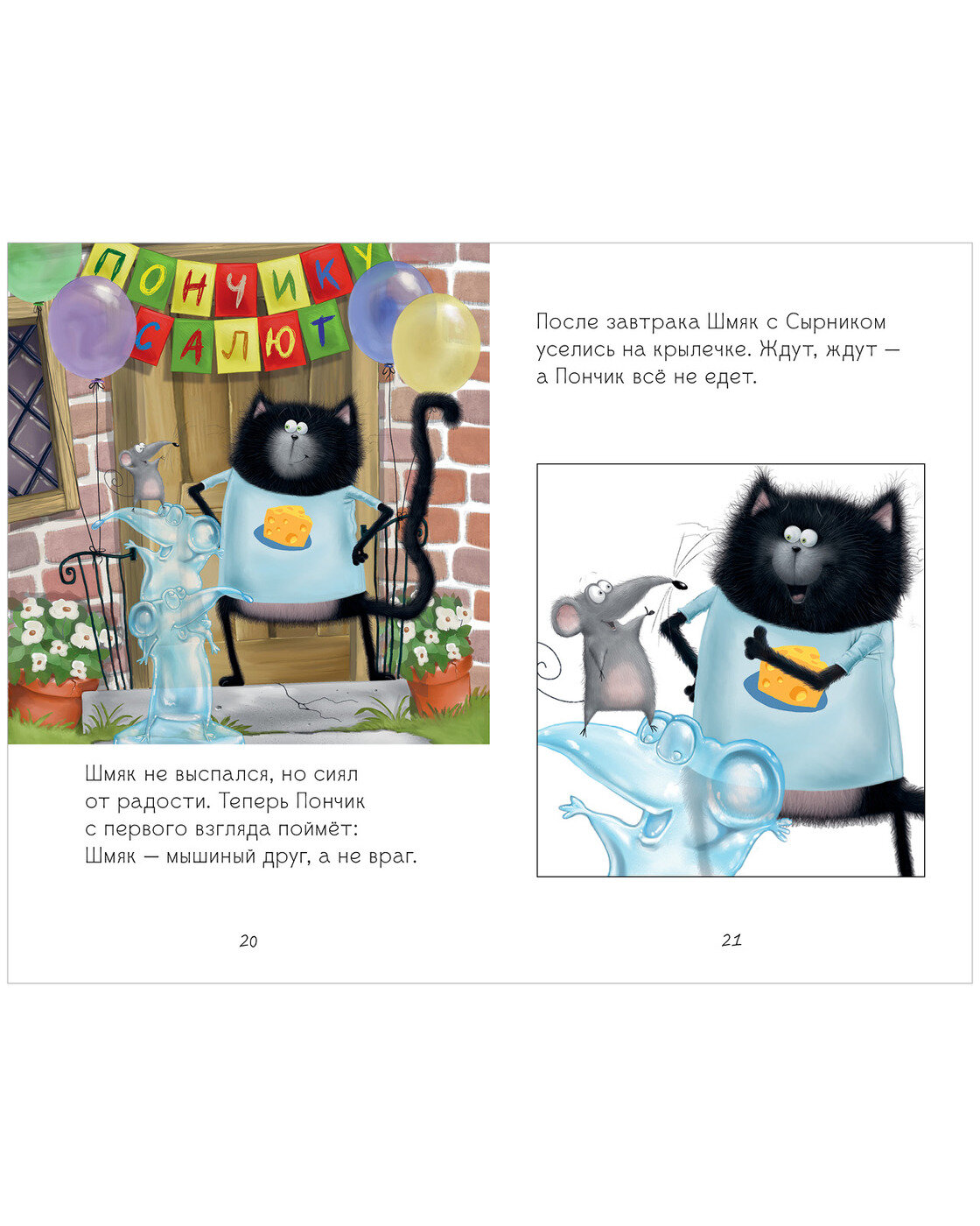 История о том как мышонок Сырник и котенок Шмяк ждали в гости мышонка Пончика. Читается также легко, как собственно и вся серия про котенка Шмяка. Опять же рекомендую к покупке тем, кто уже знаком со Шмяком и Сырником. История написана в том же стиле что и остальные. Знакомство с серией лучше начинать с другой книги.Оформление отличное, иллюстрации тоже. Шмяк все так же очарователен.