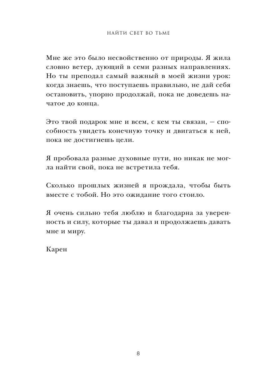 - Карен Берг, "Найти Свет во тьме".