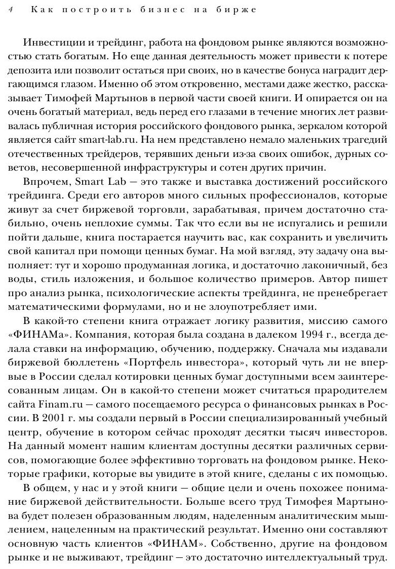 О "Механизме трейдинга" Тимофея Мартыновакнига «механизм трейдинга» начинается с общей постановки общей цели в трейдинге и уходит в сторону навороченных узкоспециализированных торговых задач. И здесь сразу возникает два вопроса – на кого рассчитана эта книга? судя по началу, когда говорится много слов о том, что трейдинг – это чрезвычайно сложная профессия, что она приносит много горечи и страданий, кажется, что она рассчитана на новичков, которые очень хотят стать профессиональными трейдерами. Поэтому так много слов о какой-то иной высшей цели, кроме как просто попробовать заработать деньги. Но новички вряд ли задумываются стать матерыми трейдерами изначально. Как правило, они просто хотят попробовать преумножить свои деньги, и как правило не торговлей (трейдингом), а инвестициями.