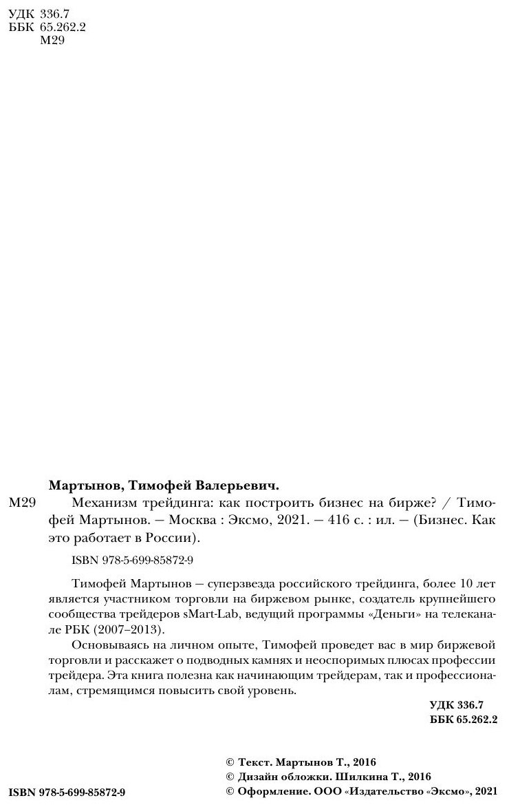 Механизм трейдинга. Как построить бизнес на бирже? (Тимофей Валерьевич Мартынов); Эксмо, 2021
