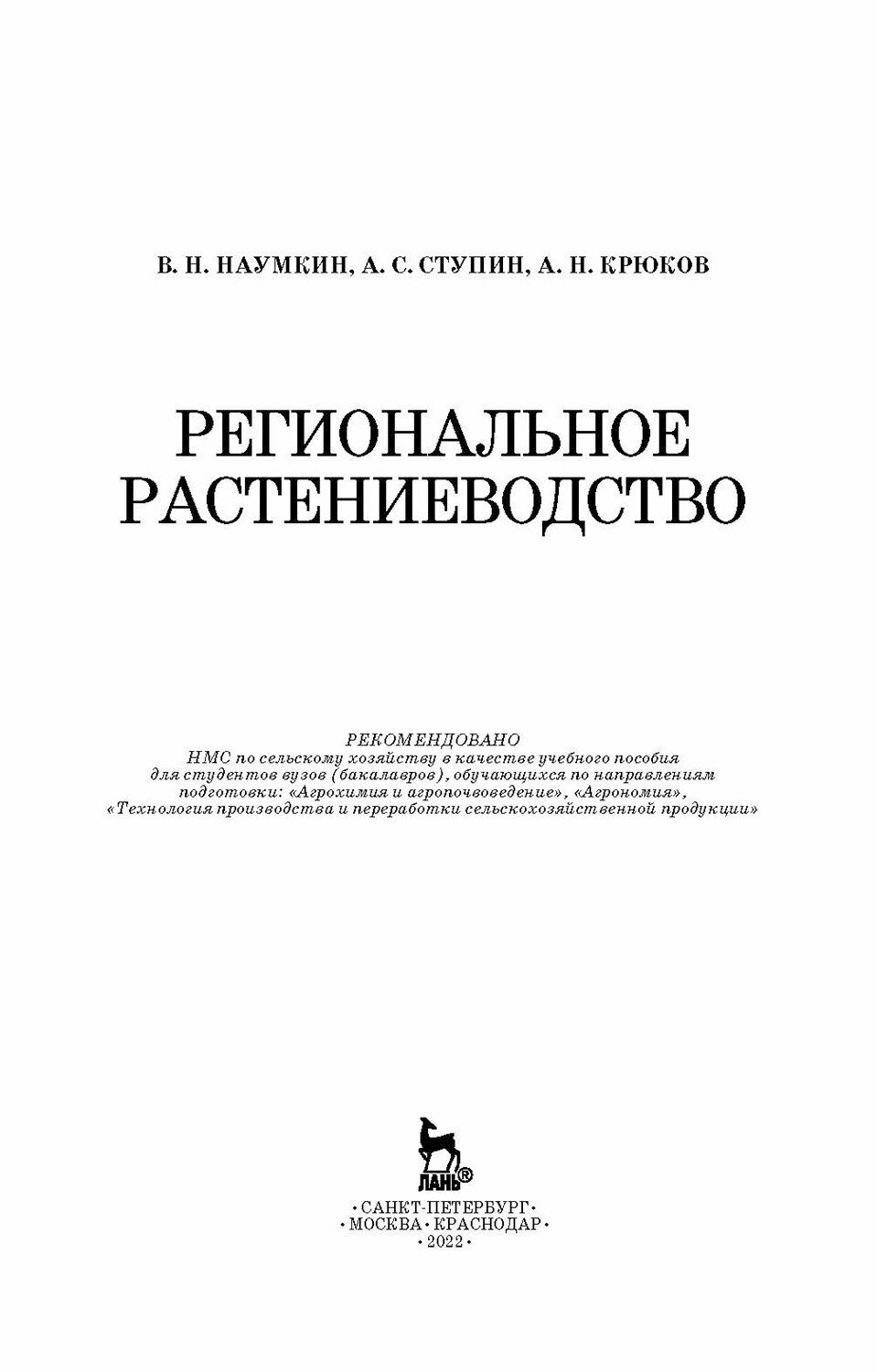 Региональное растениеводство. Учебное пособие (Наумкин Виктор Николаевич, Ступин Александр Сергеевич, Крюков Александр Николаевич); Лань, 2017