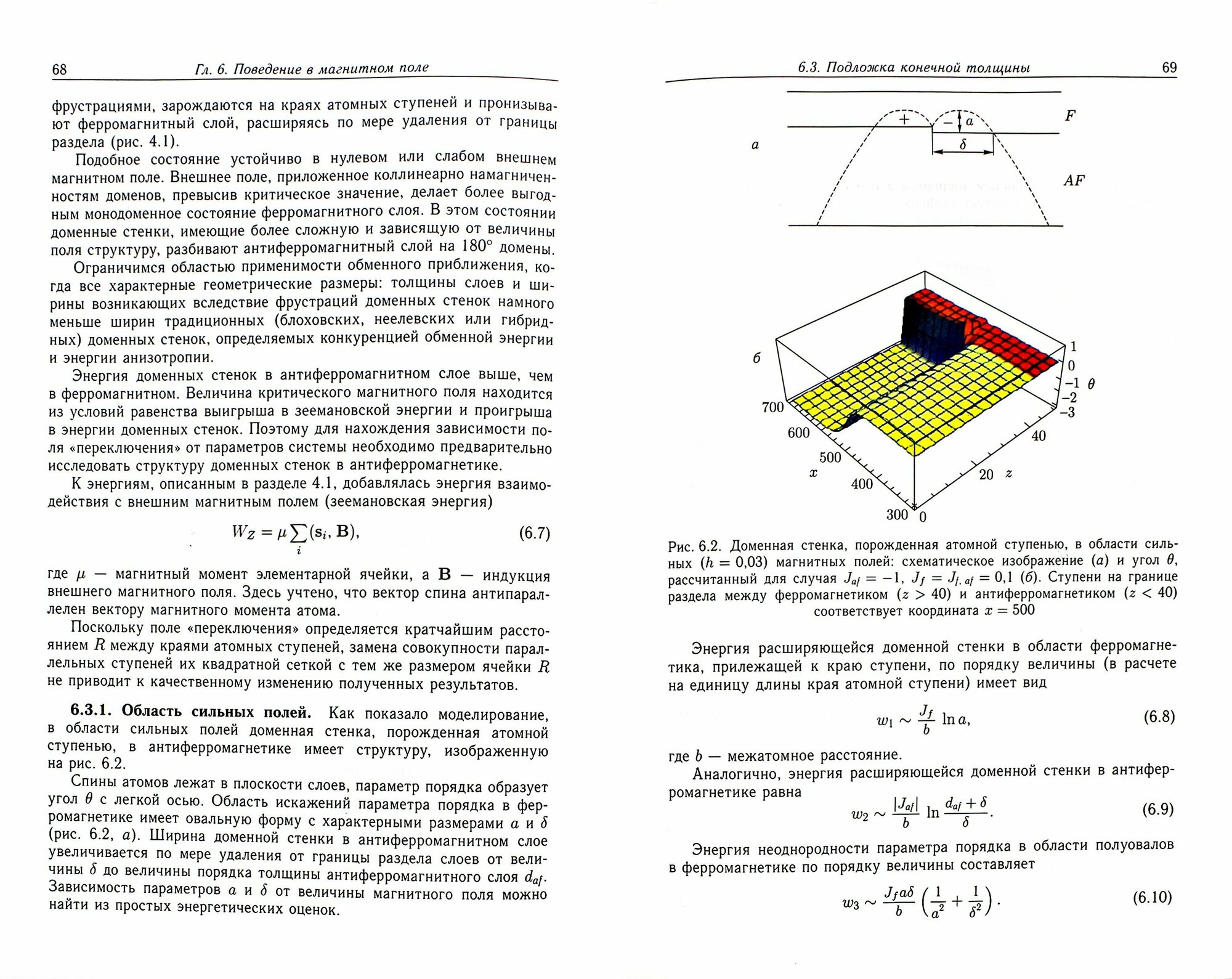 В предлагаемой читателю книге рассмотрены многослойные магнитные наноструктуры, нашедшие широкое применение в считывающих головках жестких дисков и лежащие в основе перспективной магниторезистивной памяти. Показано, что в многослойной системе ферромагнетик-антиферромагнетик поведение магнитных параметров порядка в слоях нанометровой толщины во многом определяется фрустрациями, возникающими на границах раздела слоев. Предсказаны новые типы доменных стенок, порождаемых фрустрациями обменного взаимодействия. Ширина этих стенок определяется конкуренцией обменных взаимодействий внутри слоев и между слоями и оказывается много меньше ширины традиционных доменных стенок. Построены фазовые диаграммы "толщина слоя (слоев)-шероховатость" тонкой пленки ферромагнетика на антиферромагнитной подложке и спин-вентильной системы ферромагнетик-антиферромагнетик-ферромагнетик с учетом энергии одноионной анизотропии. Обнаружено, что благоприятным для появления обменного сдвига в системе ферромагнетик-антиферромагнетик является наличие взаимно перпендикулярных легких осей, лежащих в плоскости слоев. Кроме этого, либо должно существовать связанное состояние доменной стенки на границе раздела, либо должен иметь место пиннинг доменной стенки дефектами кристаллической решетки в антиферромагнетике вблизи границы с ферромагнетиком, кристаллической решетки в антиферромагнетике вблизи границы с ферромагнетиком.
