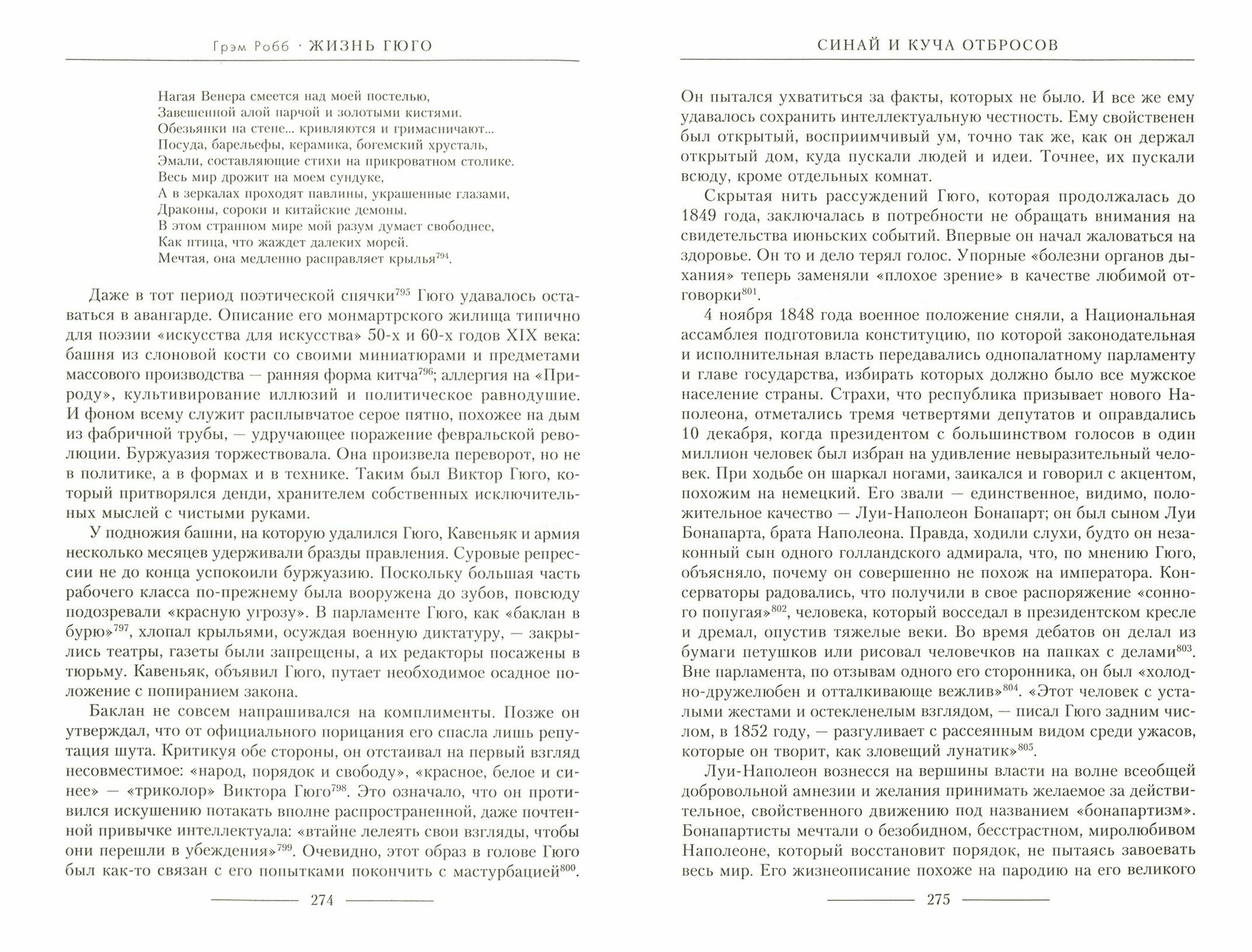 Это лучшая биографическая книга о Викторе Гюго из всех, написанных в последние десятилетия. Британец Грэм Робб – великолепный знаток Франции, ее литературы и истории. Он обнаружил и ввел в оборот ряд новых документов, связанных с жизнью великого писателя, изученной, казалось бы, вдоль и поперек. Он остроумен, изобретателен, всегда критичен и при этом доброжелателен к своему герою (что удавалось не многим претендентам на создание биографии Гюго). Множество подробностей, которые автор передает с такой точностью и яркостью, вообще не были известны российскому читателю. Минус (для кого-то) – в книге мало говорится о романах Гюго. Еще минус – автор не любит его «английские» произведения и не скрывает этого. Но биография писателя создается не для того, чтобы пересказывать его книги. Жизнь Гюго – это десяток романов, комедий и трагедий под одной обложкой. И они невероятно интересны. Об этом и рассказывает Грэм Робб.