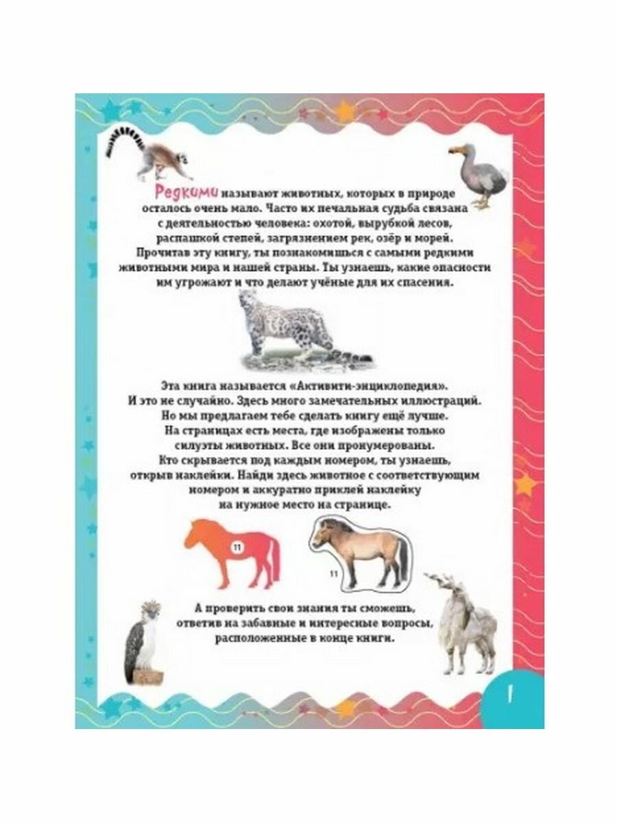 Очень советую данное издание - книжка содержит интересные факты о редких животных, что вызывает настоящий интерес у ребенка, да и о некоторых животных моя 6 летняя дочка не знала. Плюс важный вопрос сохранения биологического разнообразия и бережного отношения к природе. И, конечно, наклейки. Одним словом, отличное издание!