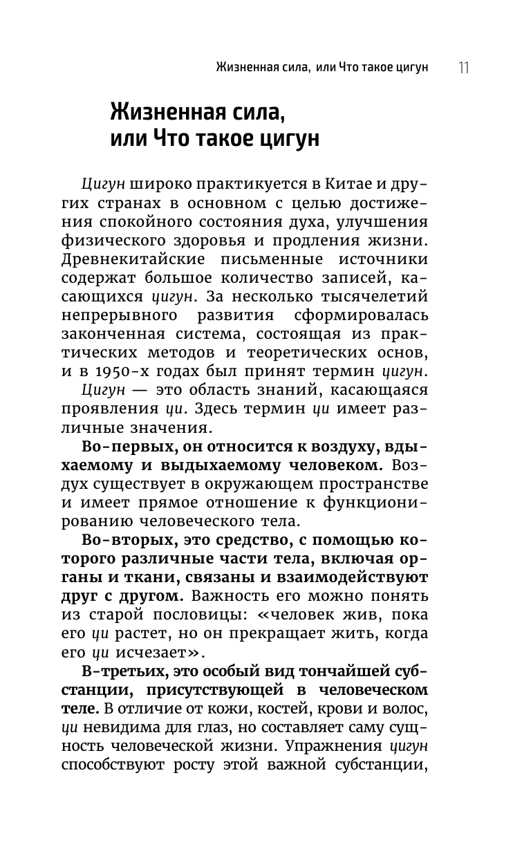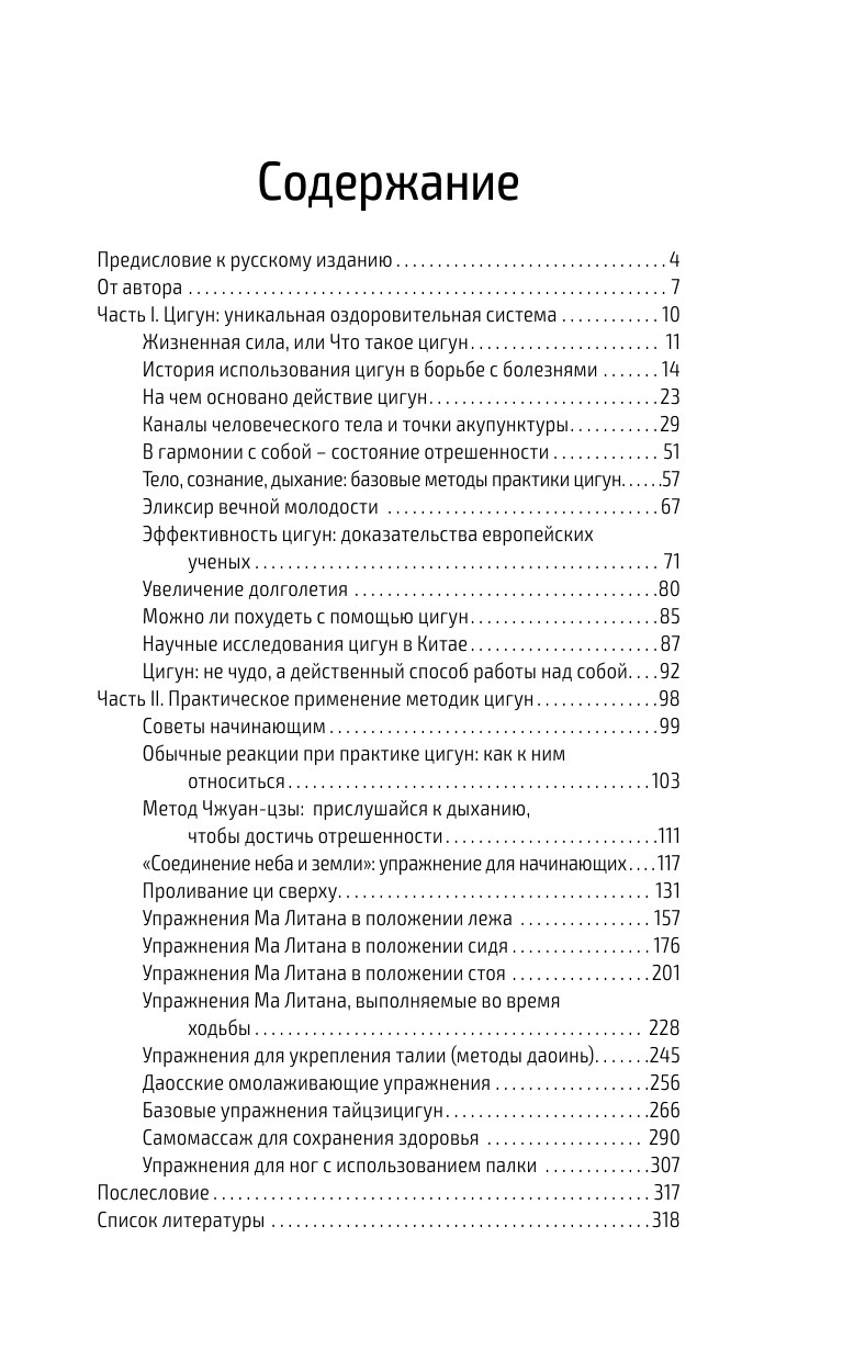 В книге представлены как базовые упражнения для начинающих, так и более сложные для "продвинутых пользователей". Помимо традиционных техник Цигун, подробно описаны также даосские омолаживающие упражнения и различные варианты самомассажа по основным точкам акупунктуры.