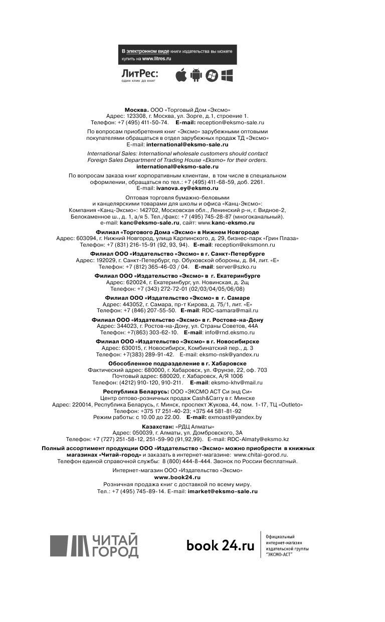 По данным нашего сервиса товар предлагался к продаже в 10 магазинах. На сегодняшний день доступен в 5 магазинах: Читай-город, Буквоед, book24, ЛитРес, Яндекс.Маркет. По цене от 279 р. до 582 р., средняя цена составляет 460 р., а самая низкая цена в магазине ЛитРес. В случае, если для вас на данный момент цена слишком высока, вы можете воспользоваться сервисом «Сообщить о снижении цены» - мы оповестим вас как только цена опустится до желаемого значения. Но будьте внимательны, используя сервис «История цены» можно спрогнозировать в какую сторону изменяется цена, возможно сейчас самое время для покупки.