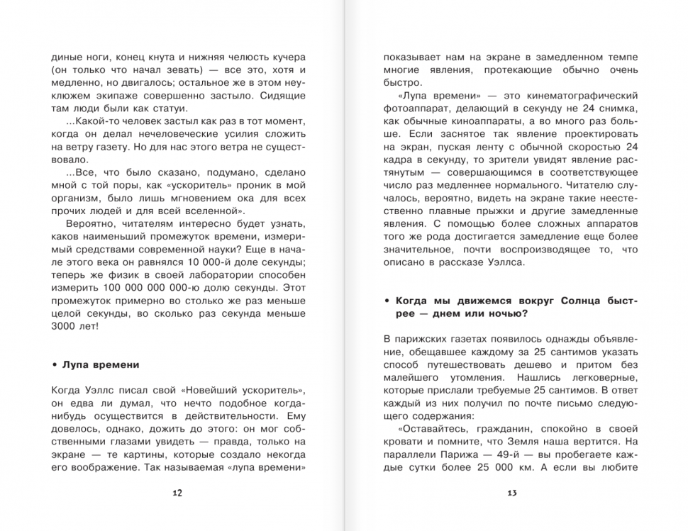 Приятный сборник. Читала ребёнку вслух, потом он сам понравившиеся места перечитывал. Тут есть и истории про изобретателей (аккумулятор Уфимцева, "вечный двигатель" времён Петра I), и примеры из литературы - Жюль Верновские полеты на Луну и Уэллсовский человек, который ничего не весил, - и везде рассматривается что-нибудь любопытное из мира физики.