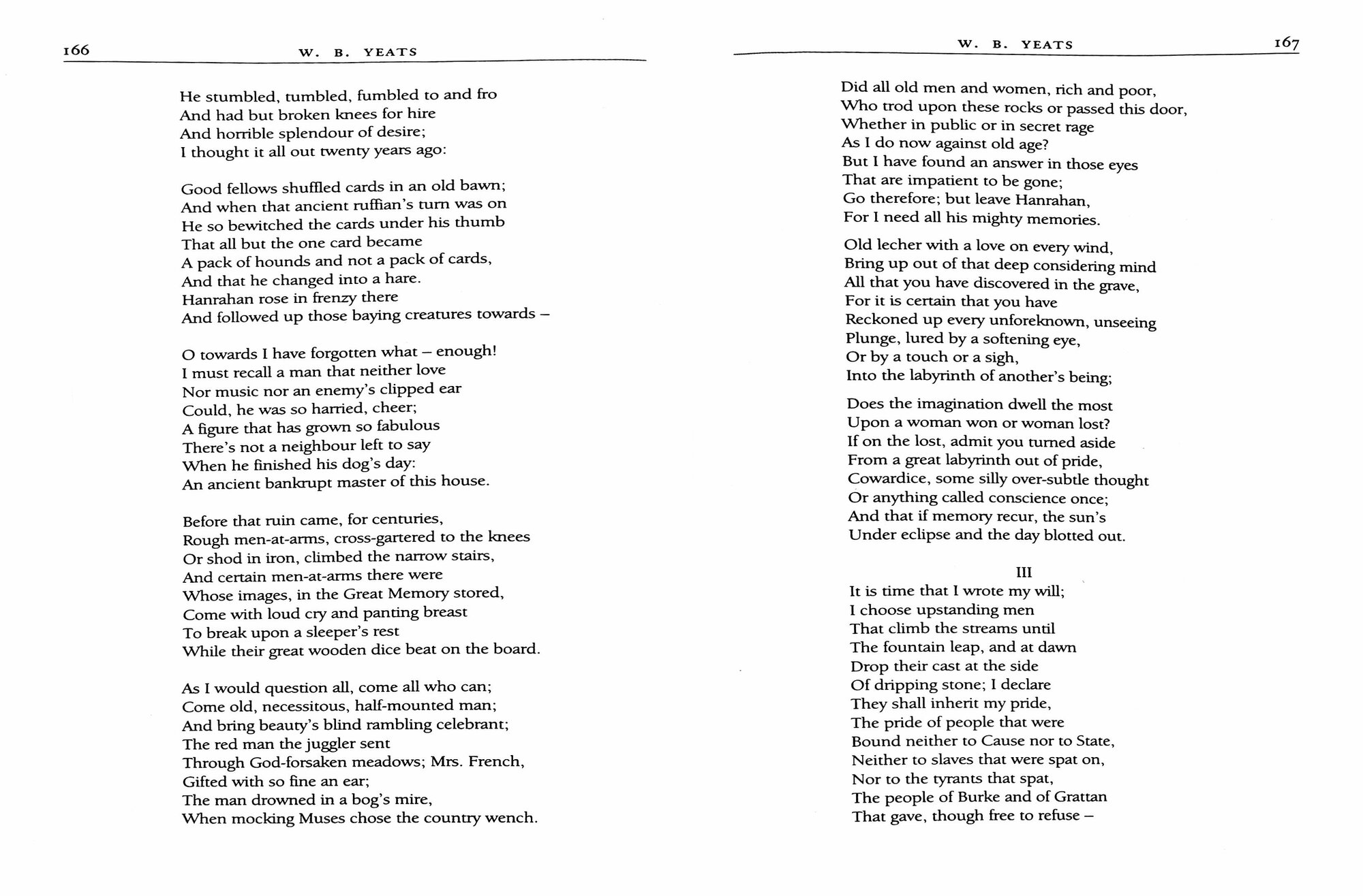 В стихах Йейтса всегда можно открыть что-то новое. Йейтс был невероятно плодовит, и эта книга включает в себя сотни стихов, от его ранних романтических лет на закате викторианской эпохи до его более современных стихов в первые несколько десятилетий 20-го века. Однако повторяются многие из тех же тем: безответная любовь; борьба за ирландский национализм; процесс старения; и героические мифы, вдохновленные греческим и ирландским фольклором. Во многих его работах чувствуется сильное чувство меланхолии, которое сильно повлияло и на меня во время чтения, хотя более жизнерадостные читатели могут не чувствовать того же. Одна из самых невероятных черт Йейтса, это его способность передавать эмоции, смысл и образы в формальной поэтической структуре. Даже в своих самых современных произведениях Йейтс использует рифму, пунктуацию и размеренную интонацию, от которых, похоже, отказались многие современные поэты. Мастерство Йейтса в английском языке велико, форма и смысл идеально переплетены. Подобно Канове или другим классическим скульпторам, создававшим изысканные изображения в мраморе, Йейтсу свойственна невероятная чистота и ясность. Хорошо.