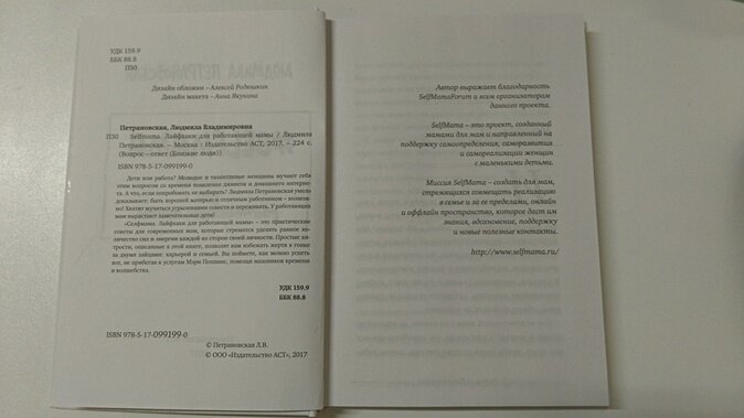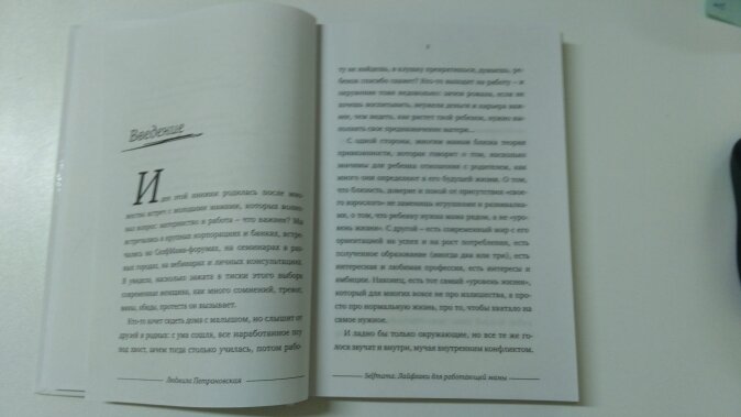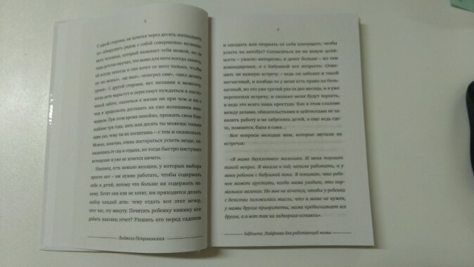 Получила сегодня книгу и прочла сразу на одном дыхании! Все буквально все, что беспокоило и тревожило после рождения ребенка и выхода на работу нашла в этой книге. Работы Петрановской читала и раньше, но именно эта нашла такой отклик у меня. Чувство вины, тревога, опустошенность и противоречивость требований окружающих - это то, с чем сталкивается работающая мама. Книга помогает посмотреть на это с другой стороны, принять и понять многое. Огромный плюс книги: конкретные, простые и понятные лайфхаки, которые могут облегчить жизнь. Пока попробовала только 2, они работают. Очень рекомендую, особенно тем, кто "загнал себя" в стремлении быть идеальной мамой и одновременно успешной карьеристкой!