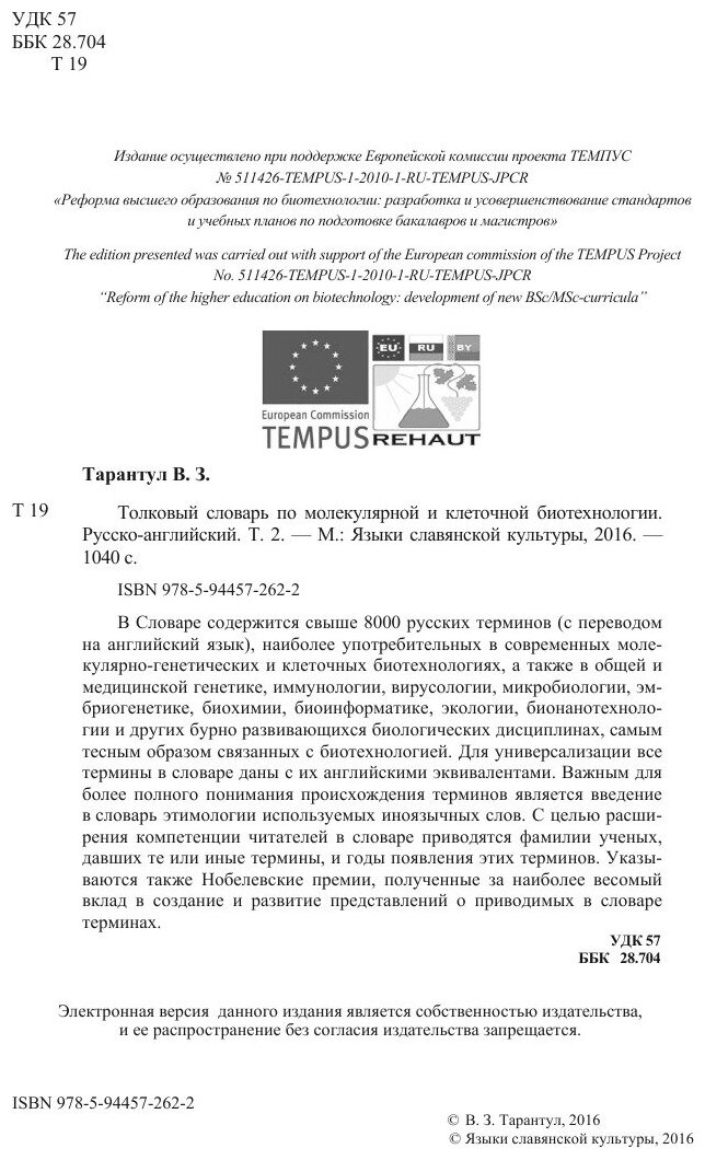 Толковый словарь по молекулярной и клеточной биотехнологии. Русско-английский. Том 2 (Вячеслав Тарантул); Языки Славянской Культуры, 2016