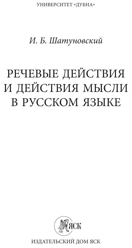 Речевые действия и действия мысли в русском языке (Илья Борисович Шатуновский); Языки Славянской Культуры, 2016