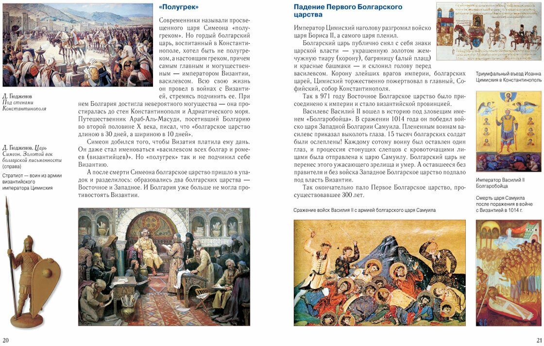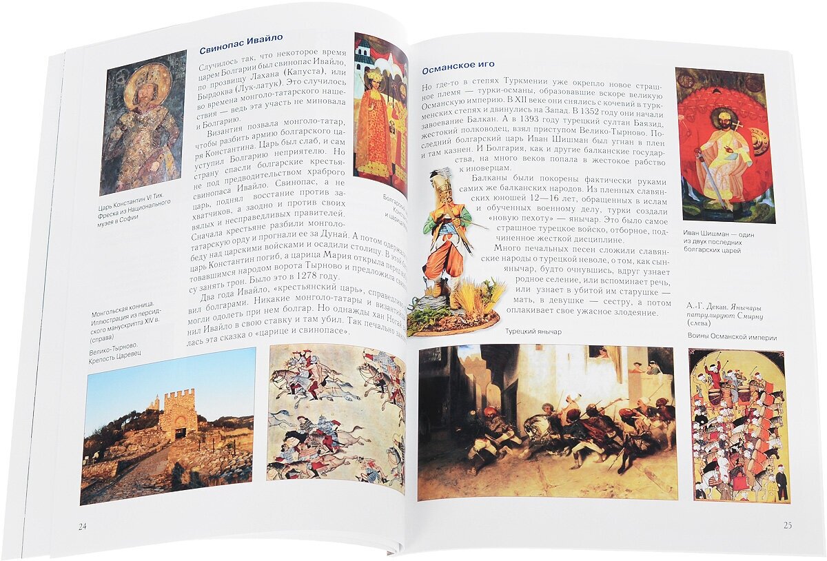 Из достоинств: книга прекрасно издана, на хорошей бумаге, много красивых качественных фотографий и изображений картин на исторические сюжеты. шрифт крупный, что подтверждает направленность книги на детскую аудиторию. Редакция называется "Воскресный день", потому и издание - что-то вроде воскресной школы. Если хотите увлечь ребенка Болгарией - отличный вариант. Хотя подавать так историю (фактически искажать) нельзя даже для детей.