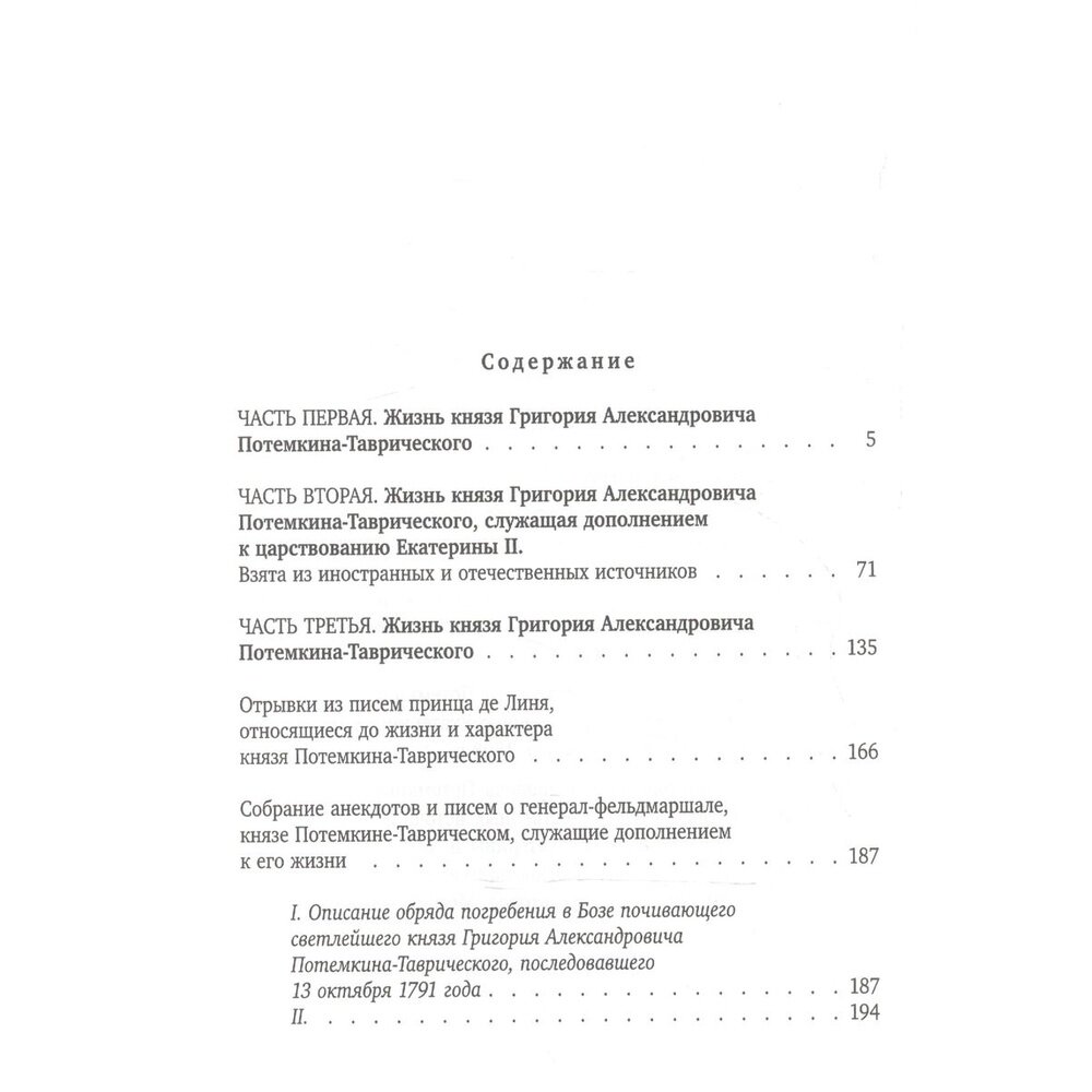 Книга составлена по воспоминаниям современников о князе Потемкине и из статей о нем из европейских политических изданий конца XVIII века. Издание является живым свидетельством о великом политике, царедворце, полководце и хозяйственнике Екатерининской эпохи - Светлейшем князе Григории Александровиче Потемкине-Таврическом.