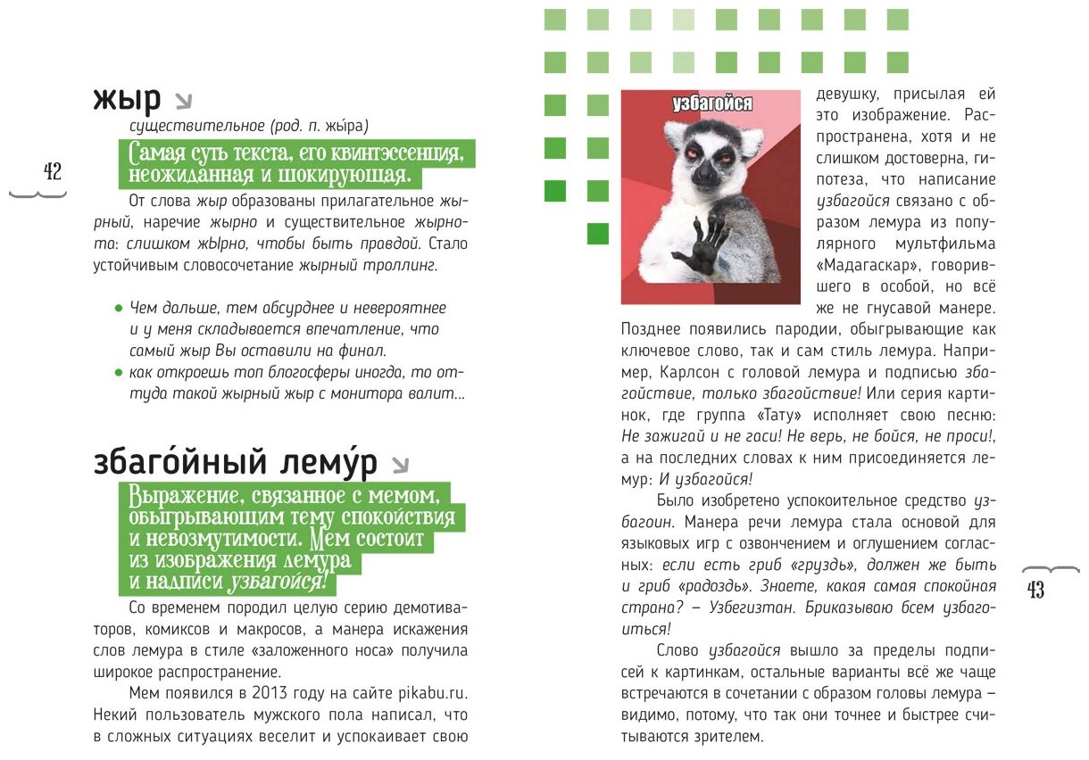 Очень интересная книга. Трудно дать словарное описание совершенно новой фооме языка. Трудно не скатиться в ироничное толкование, так привычное стилистике интернета. Команде словаря это удалось. Жаль только, что словарь маленький. Всего 200 слов. Однако словник в конце книги шире, и есть надежда, что авторы словарб продолжат.