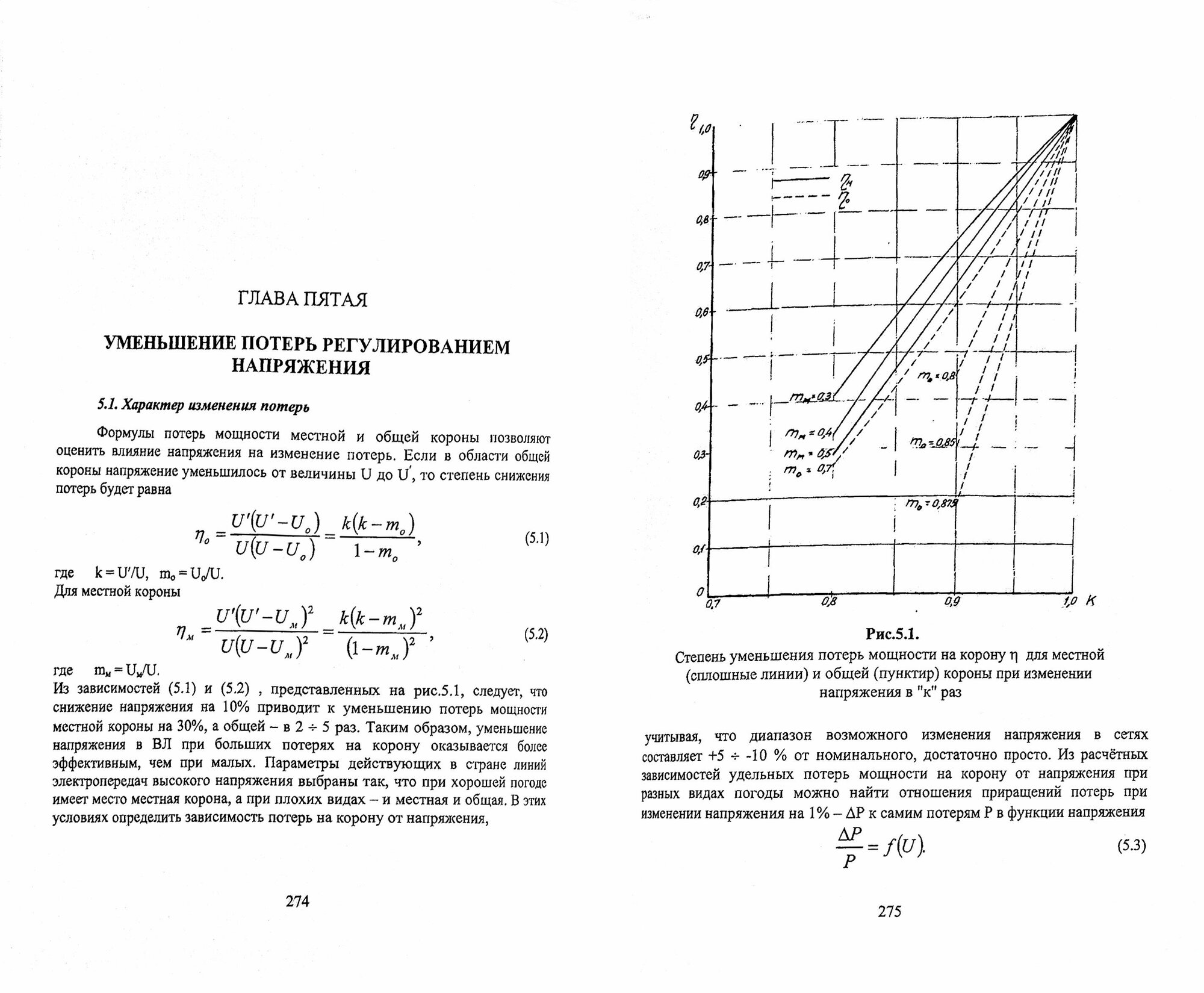 В книге с помощью уравнений Максвелла и теории переноса выведены интегро-дифференциальные уравнения коронного разряда. Дана аналитическая методика расчета характеристик общей, точечной и местной короны на проводах ВЛ переменного тока. Показано, что полученные формулы позволяют рассчитывать движение, плотность и величину объёмного заряда при короне па одиночном проводе и пучке проводов, размеры коронирующих поверхностей проводов в пучке проводов и др. Выведены формулы для расчёта потерь на корону, показано, как учитывать коронный разряд при анализе переходных процессов. На основе этих формул, измерений на опытных пролётах и 10-летних непрерывных измерений потерь мощности на корону с регистрацией метеоусловий на действующих ВЛ 500, 750 и опытной 1150 кВ антенным методом ЭНИН даны функции распределения коэффициента снижения критической напряжённости по отношению к начальной при разных видах погоды. С помощью этих функций рассчитаны распределения обобщённых потерь, их средние и максимальные значения при переменном и постоянном токе. Показано, как с помощью оперативного регулирования напряжения можно уменьшить потери энергии на корону, используя в качестве датчика ваттмстровую систему измерения потерь в ВЛ. Даны рекомендации по выбору оптимальных конструкций фаз ВЛ высокого напряжения с учётом среднегодовых и максимальных потерь мощности на корону.