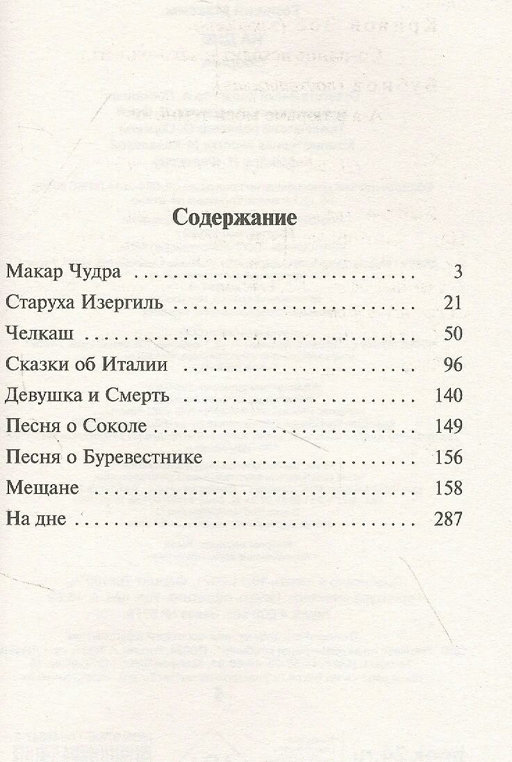В эту книгу вошли самые известные ранние произведения Горького — до сих пор не сходящая с лучших театральных сцен мира, неоднократно экранизированная драма На дне, стихотворения в прозе Песня о соколе и Песня о Буревестнике, рассказы Челкаш, Старуха Изрегиль и, конечно, шедевр романтической прозы Горького Макар Чудра, положенный в основу сценария культового, любимого многими поколениями зрителей фильма Табор уходит в небо.