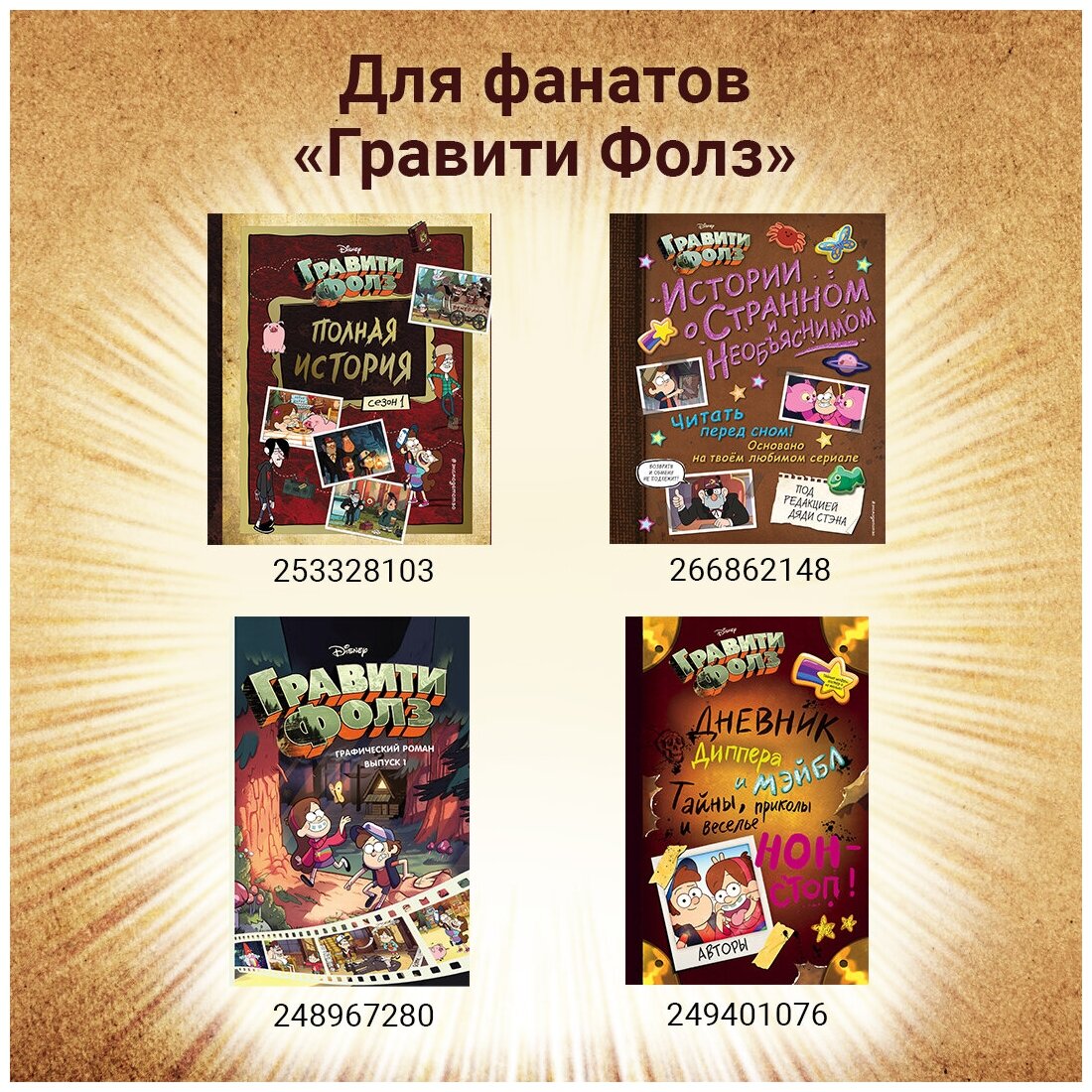 Главная книга по мультсериалу Disney "Гравити Фолз", созданному Алексом Хиршем! Абсолютный бестселлер среди фанатов мистического городка! Перед вами тот самый дневник, который Диппер нашел в самом начале лета. Его страницы не раз мелькали на экранах за просмотром "Гравити Фолз". С помощью дневника двойняшки Диппер и Мэйбл раскрывали тайны, узнавали все больше секретов и преодолевали препятствия во время летних каникул у дяди Стэна. С этой книгой вы сможете подробно изучить всех существ "Гравити Фолз", которые в сериале только упоминались, описания локаций, историю приключений дяди Форда и даже схему устройства путешествия во времени! Дневник станет замечательным подарком для любого из поклонников этого мультсериала!