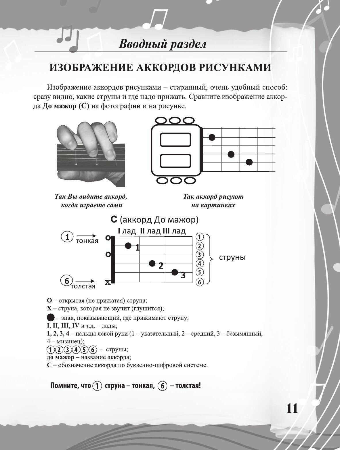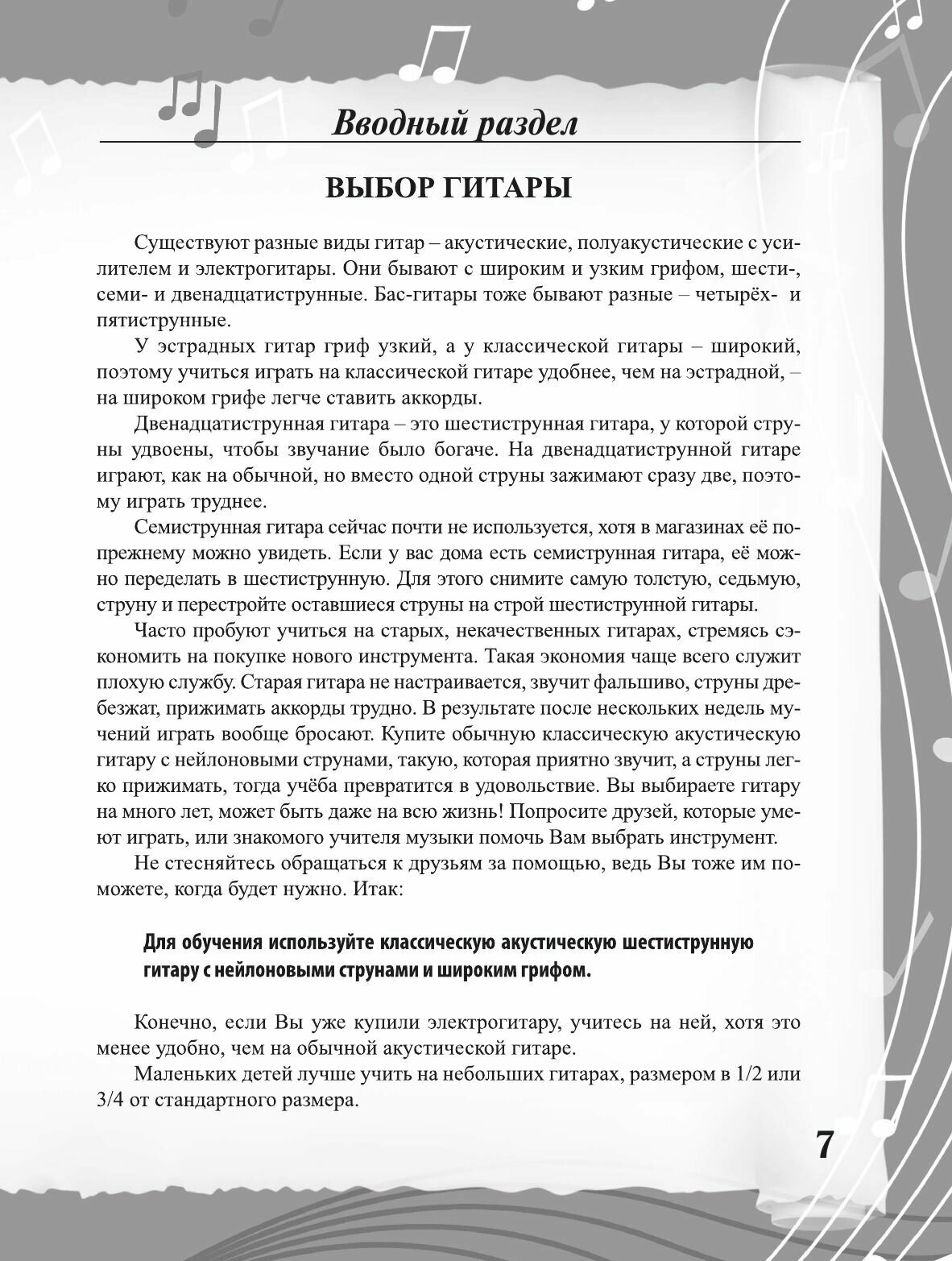 Самоучитель отлично подойдёт как и для новичков, так и для профессионалов. В книге учтены всё тонкости игры на гитаре. Если вы новичёк - вы узнаете много нового. Если вы профессионал - вы найдете полезные советы и интересные дополнения. Этот самоучитель один из самых лучших, так как в нём присутствует: и текст и картинки ( что очень важно при правильной постановки аккордов). Текст читается очень легко, нет никаких сложных терминов. В книге есть как игра боем, так и игра перебором.
