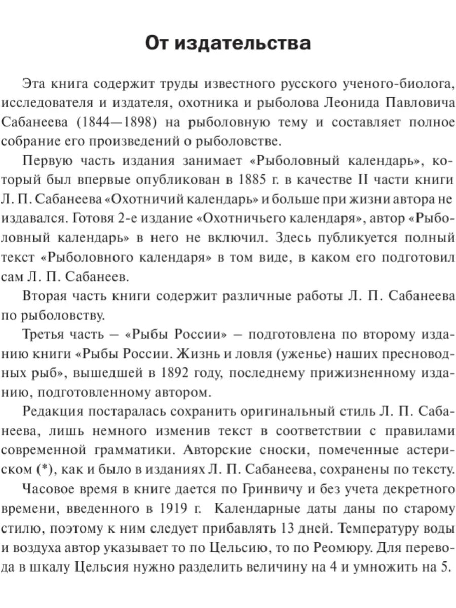 В эту книгу вошли выдающиеся труды "Рыболовный календарь" и "Рыбы России". А также статьи и очерки по вопросам рыболовства.