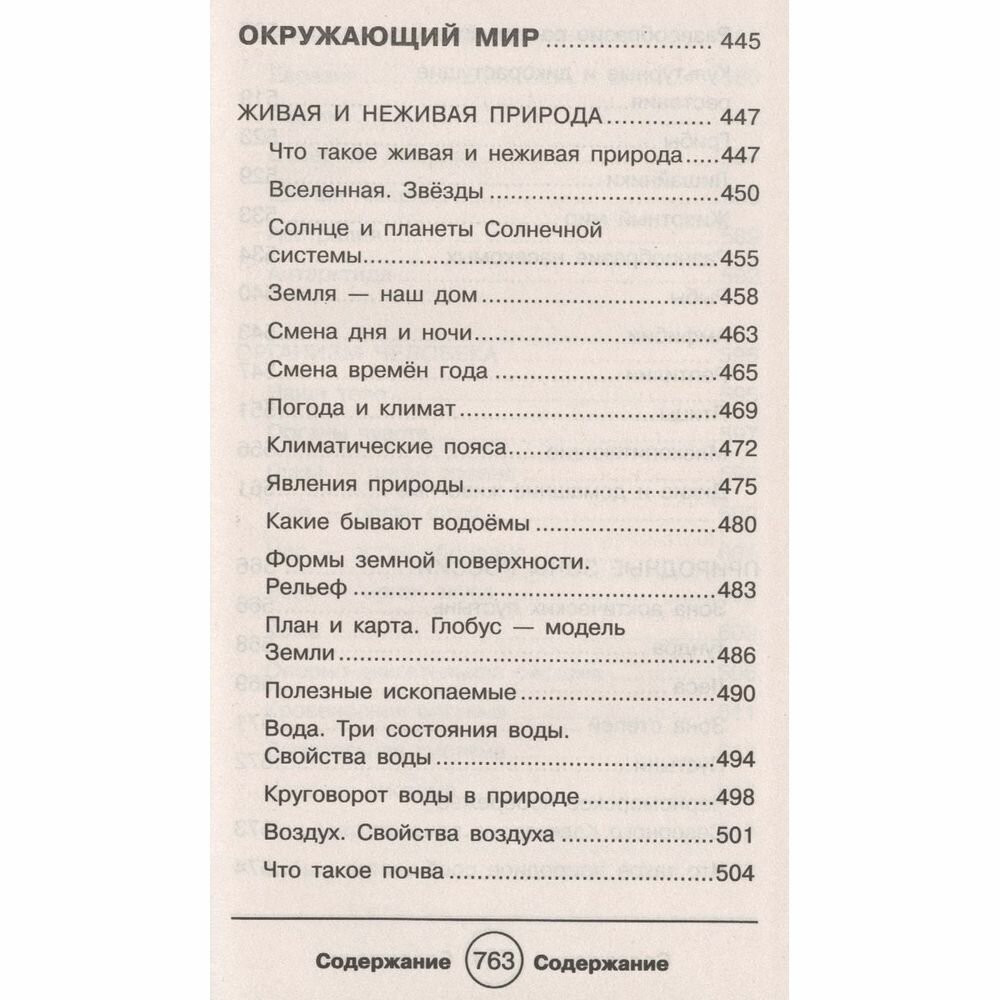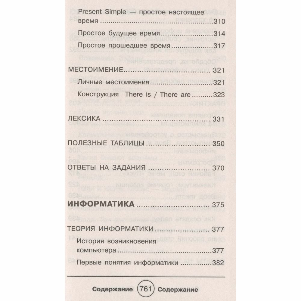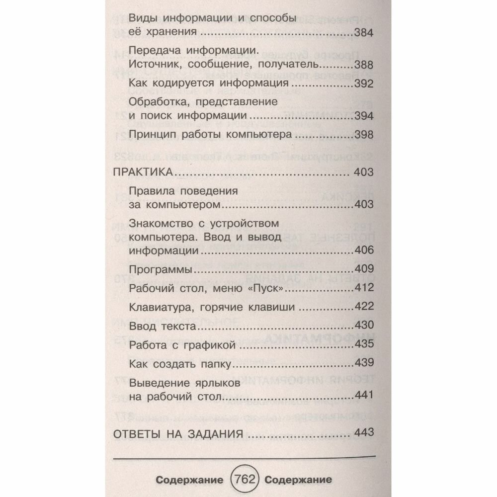 Это издание предназначено ученикам начальной школы. В справочнике представлен не только теоретический материал по шести основным предметам (русский язык, литературное чтение, математика, информатика, английский язык, окружающий мир), но также и практические задания: упражнения, задачи и примеры. Текст написан доступным языком, снабжён познавательными иллюстрациями и схемами.