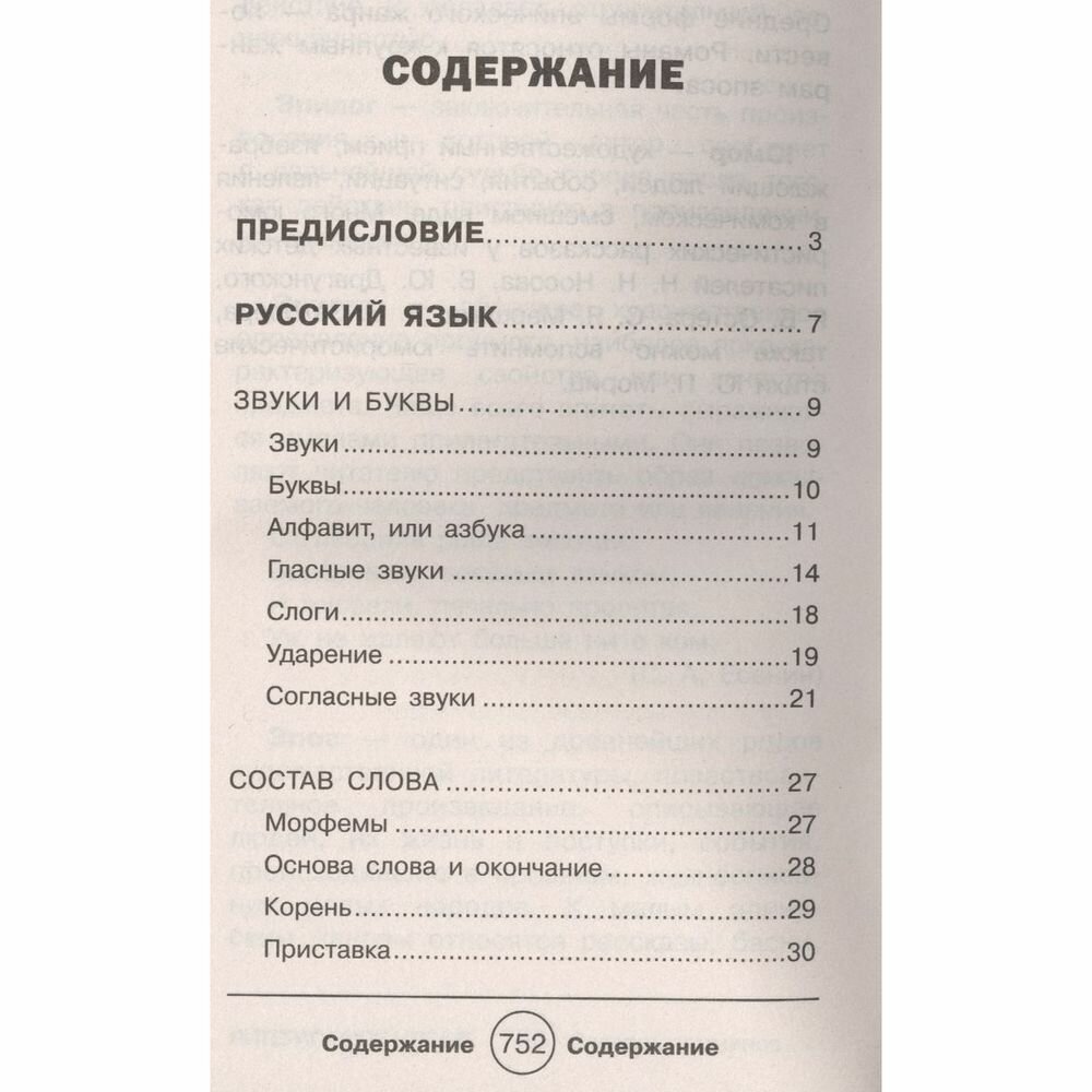 В справочнике есть 6 разделов по основным предметам, изучаемым в начальной школе. Есть не только справочный материал, но и различные упражнения, примеры и задачи, что очень удобно для закрепления полученной информации! Изложено все понятным языком, много схем и есть черно-белые рисунки для наглядности