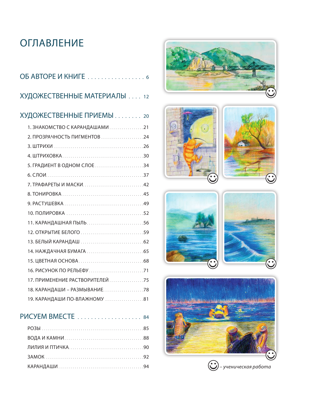 Эта книга бесценна для тех, кто только начал рисовать цветными карандашами и полезна тем, кто уже рисует ими давно и серьезно. Готовые приемы позволяют начинающим художникам развиваться как творчески, так и технически, экономя время и силы для дальнейшего профессионального роста.