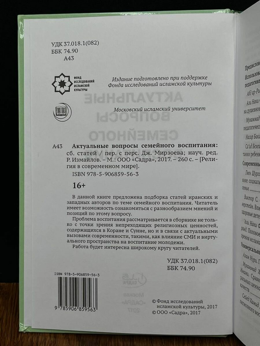 Проблема воспитания рассматривается в сборнике не только с точки зрения непреходящих религиозных ценностей, содержащихся в Коране и Сунне, но и в связи с актуальными вызовами современности, такими, как влияние СМИ и виртуального пространства на воспитание молодежи.