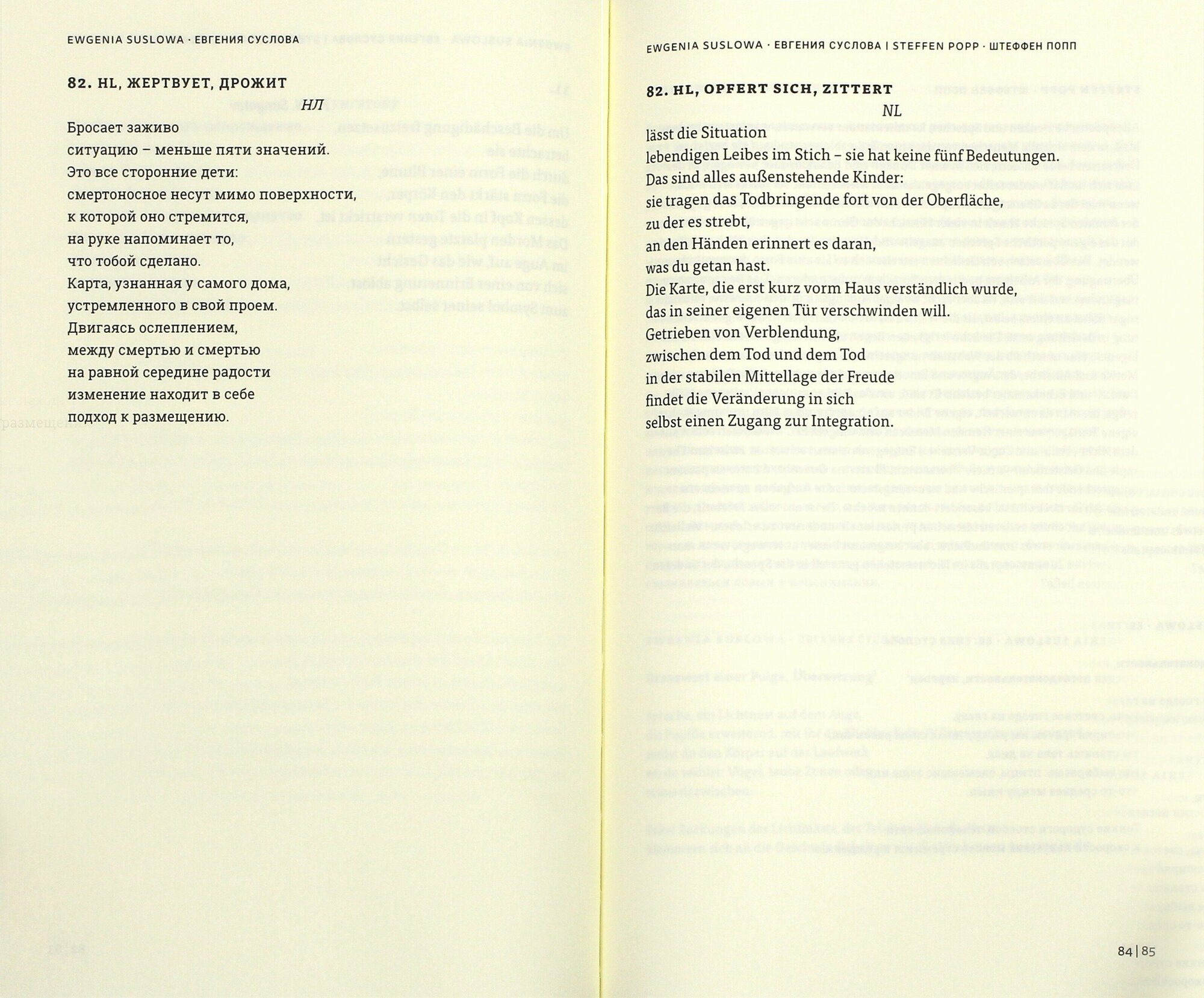 Антология представляет собой дневник и одновременно является результатом уникальной языковой авантюры. По приглашению Московского отделения Немецкого культурного центра им. И.В.Гёте и "Дома поэзии" Берлинской литературной мастерской (Literaturwerkstatt Berlin: Haus fur Poesie) в мае 2015 года в Москве встретились шесть российских и шесть немецких поэтов. Они решились на рискованную затею - перевести тексты друг друга, каждый - на свой язык, не зная при этом языка оригинала, и осуществили задуманное - в рамках проекта "Поэтическая диВЕРСия" - работая в парах, с опорой на подстрочные переводы и помощь устного переводчика. Это двуязычное издание дает возможность познакомиться с их интересными и часто совершенно неожиданными интерпретациями, созданными в рамках совместной работы.