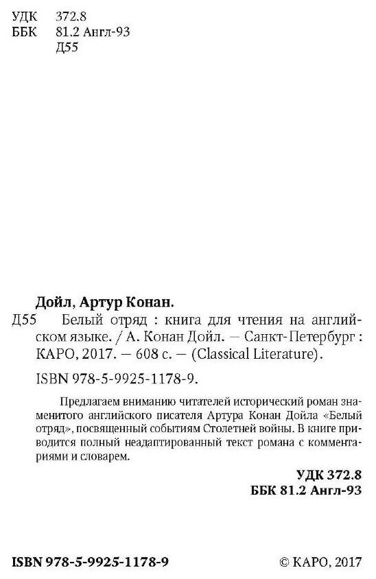 Предлагаем вниманию читателей исторический роман знаменитого английского писателя Артура Конан Дойла "Белый отряд", посвященный событиям Столетней войны. В книге приводится полный неадаптированный текст романа с комментариями и словарем.