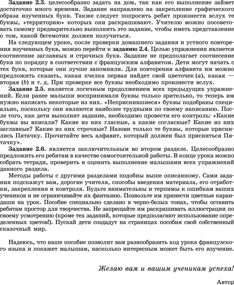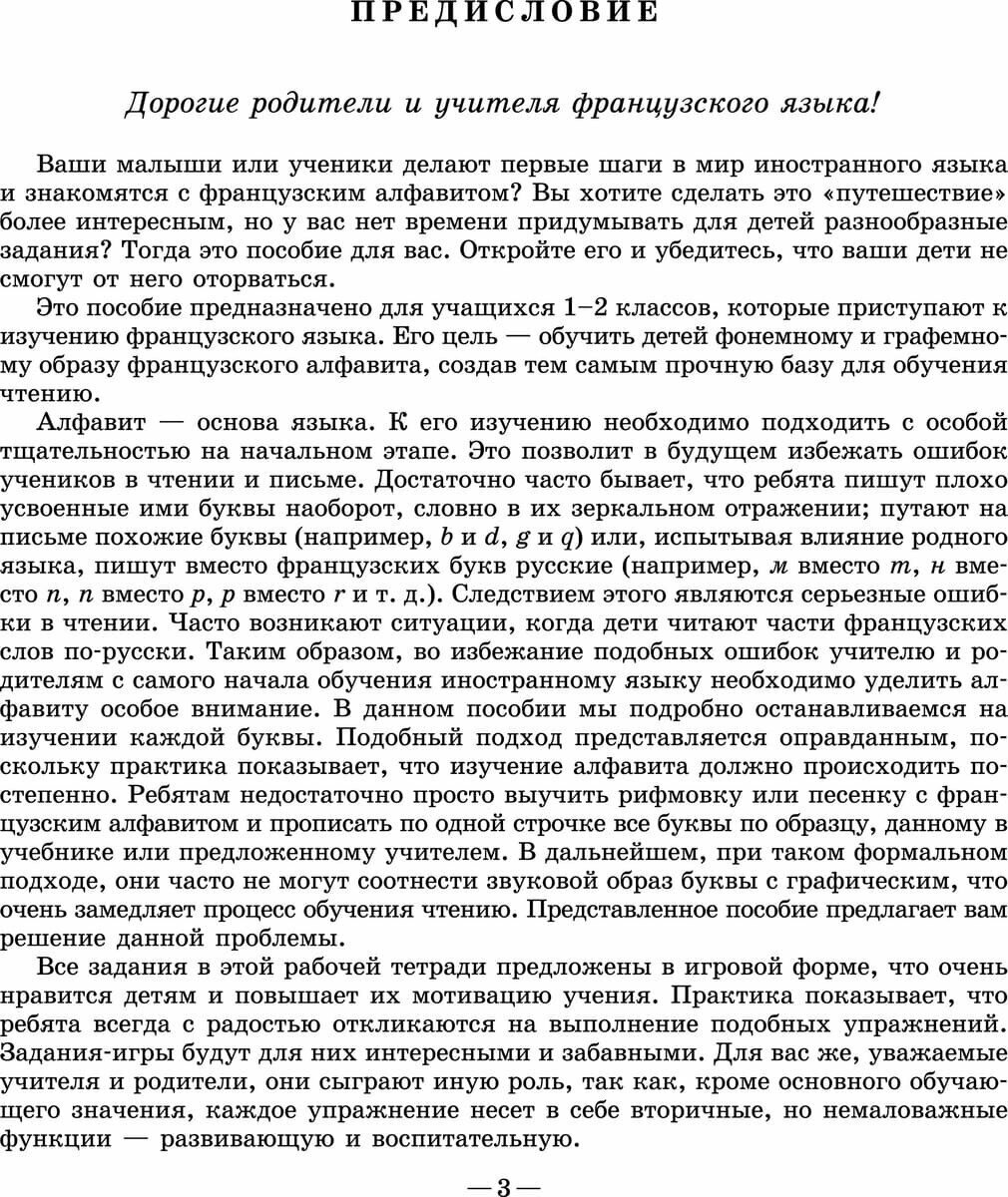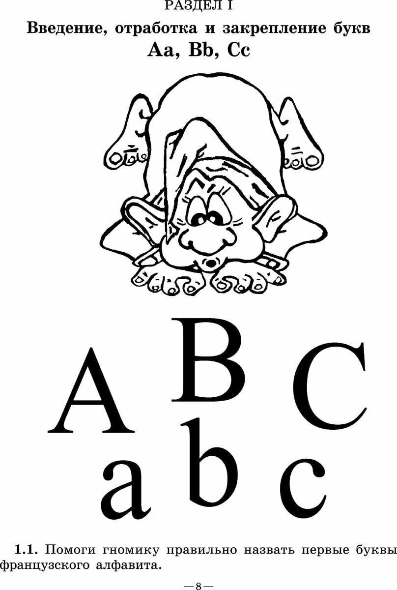 Все задания в предлагаемом издании составлены в игровой форме. Они разбиты на 9 блоков, каждый из которых включает в себя 5-7 упражнений, предполагающих введение, отработку и закрепление трех новых букв французского алфавита и повторение уже изученных. Упражнения в каждом блоке построены по возрастающей степени сложности: задания на узнавание и вычленение той или иной буквы из ряда букв, на соотнесение заглавных и строчных букв сменяются заданиями на их письменное воспроизведение.