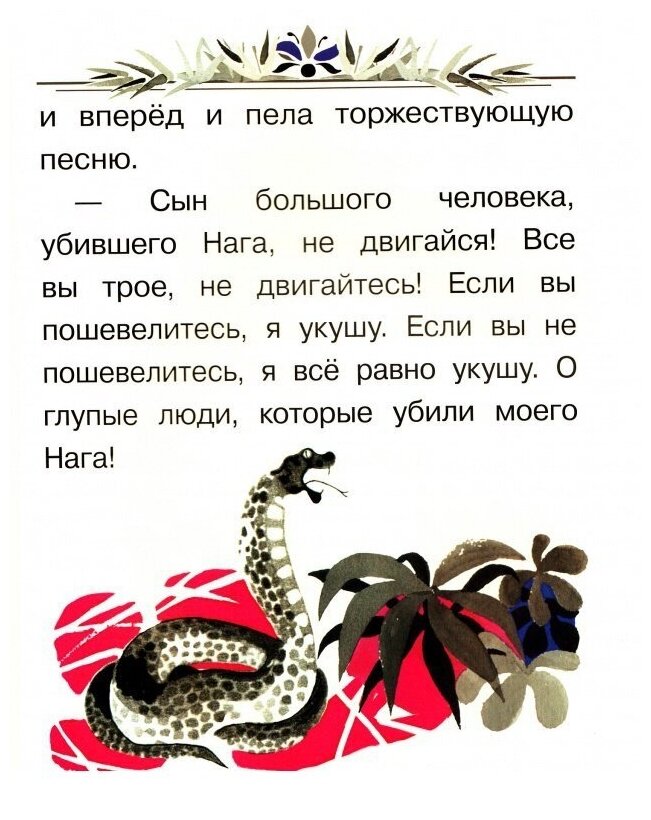 Хотела купить эту книгу из-за иллюстраций замечательного художника Владимира Перцова, но когда поняла, что текст представлен в искажённом виде (перевод Корнея Чуковского чем плох был?), что вместо мангуста появился некий мангус (кто это вообще?) и Нагайна тоже изменила имя, передумала приобретать это издание.