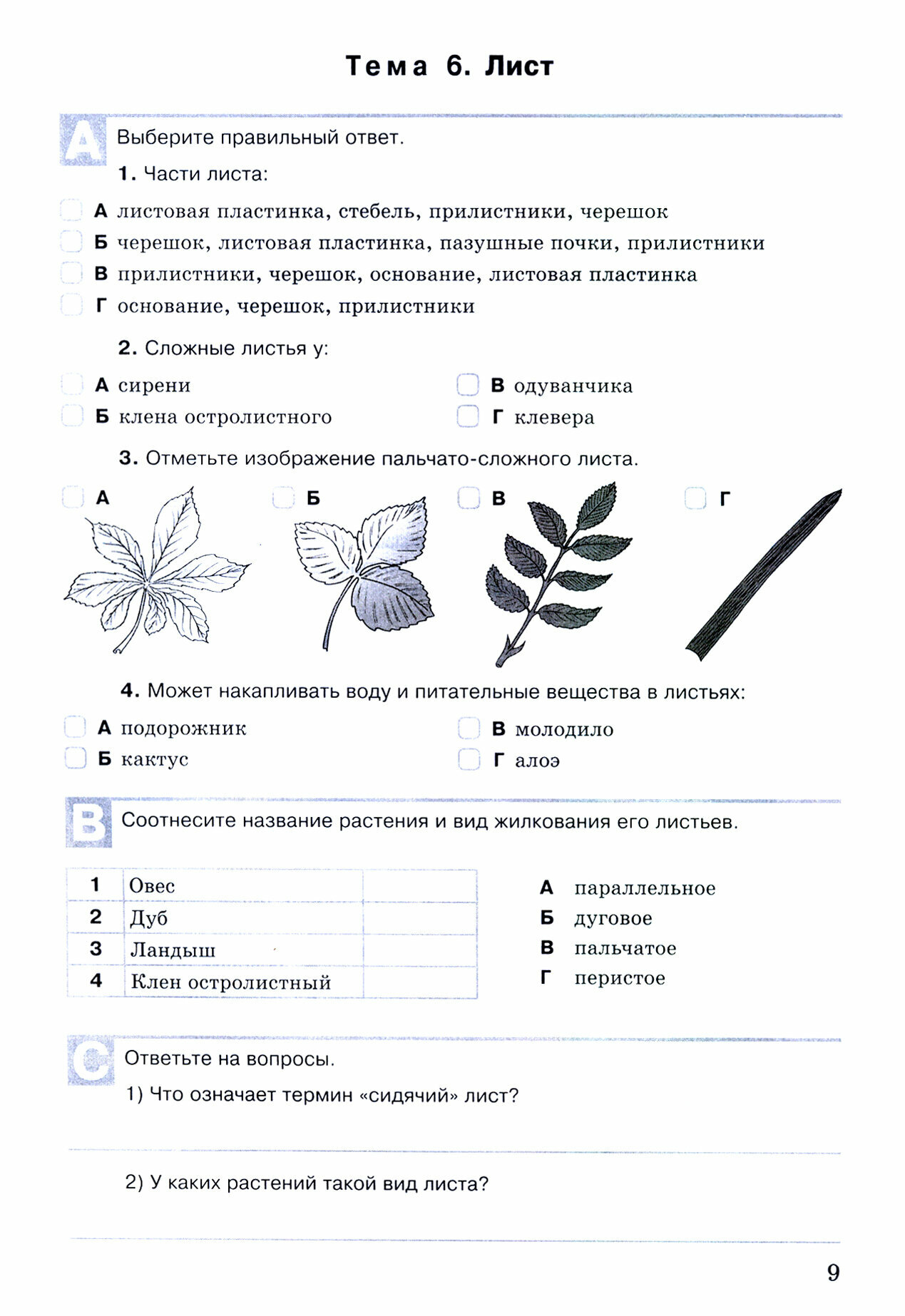 Представленные проверочные задания для 6 класса тематически сгруппированы, соответствуют требованиям школьной программы по биологии и требованиям ФГОС. Материал пособия поможет педагогу осуществлять систематический контроль знаний при проверке домашнего задания и закреплении полученных знаний на уроках, при составлении заданий олимпиад и интеллектуальных марафонов. Данные задания способствуют лучшему усвоению материала, развивают внимание, память, воображение, аналитические способности обучающихся. Пособие адресовано учителям, школьникам и их родителям.