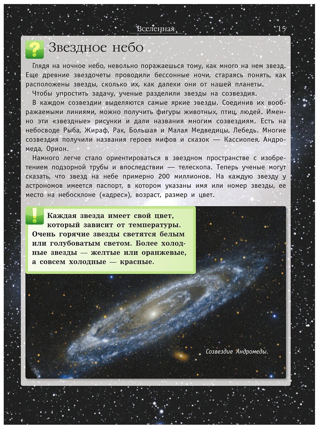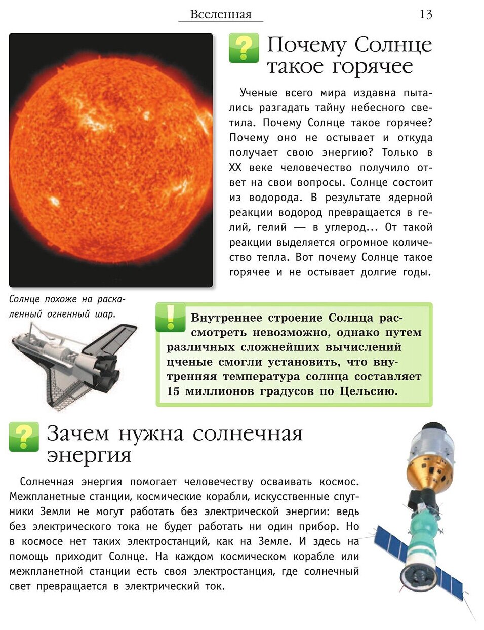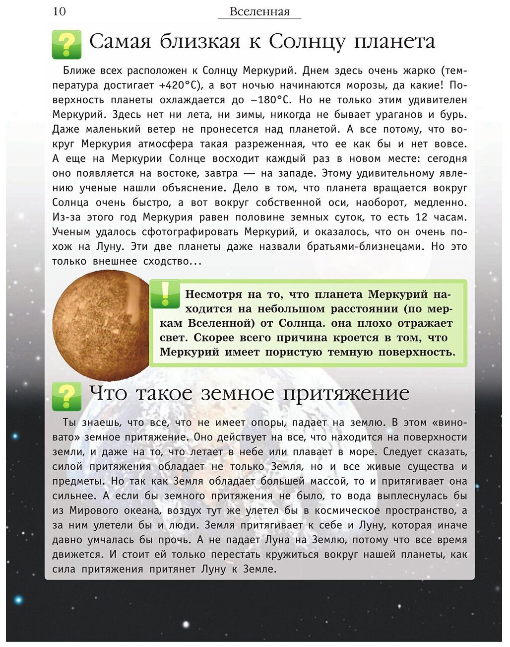 Теперь и у тебя есть уникальная возможность узнать ответы на все эти и многие другие вопросы. На страницах настоящего издания ты найдешь большое количество увлекательных статей на самые разные темы: возникновение и устройство Вселенной, планеты Солнечной системы, появление и развитие городов и стран, современные флора и фауна, факты из истории, науки и техники и др. А содержательные иллюстрации помогут тебе не запутаться во всем многообразии представленной информации и сделают знакомство с тайнами мироздания еще увлекательнее.
