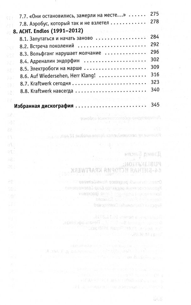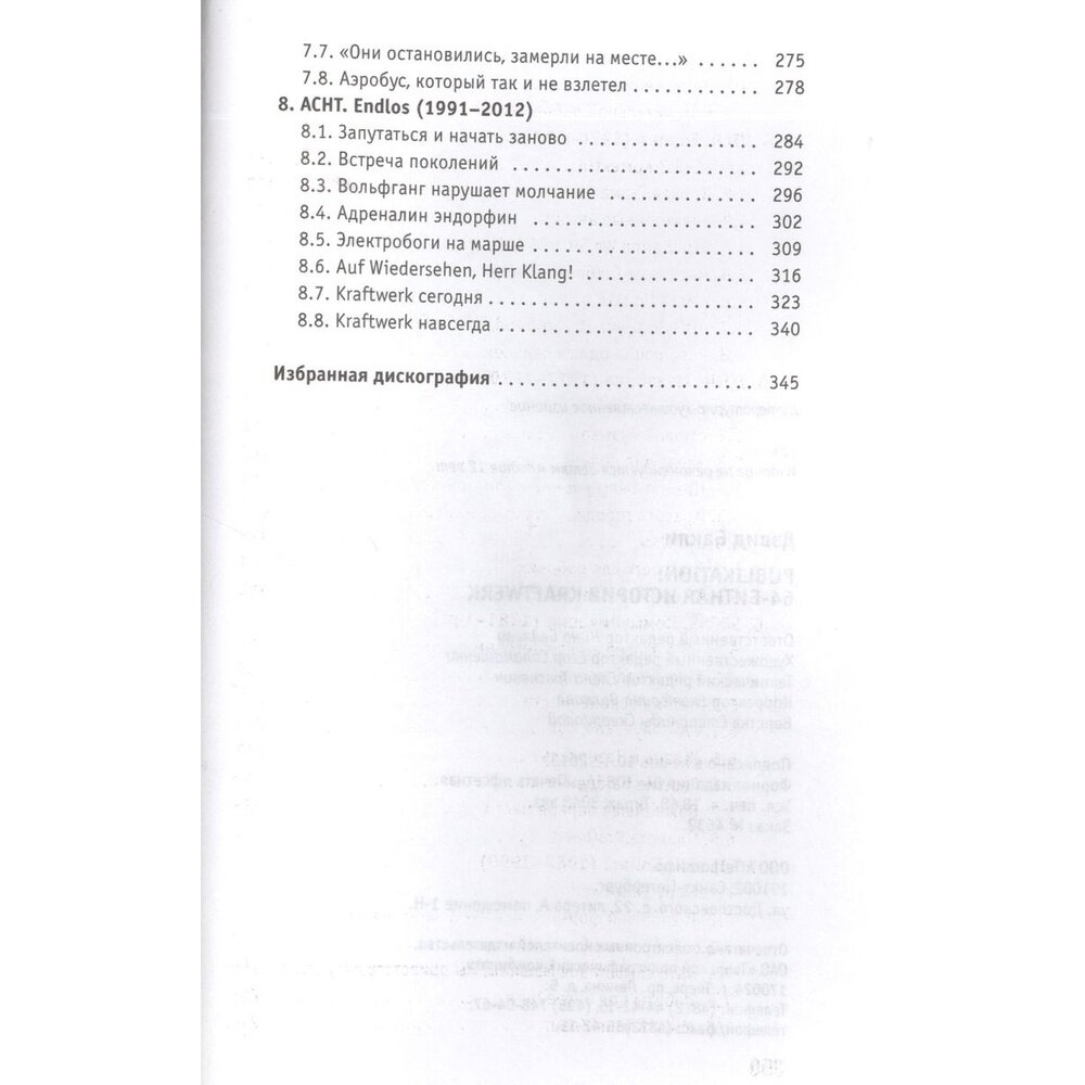 Сегодня Kraftwerk находятся на вершине музыкального Олимпа, вот уже на протяжении 40 с лишним лет оставаясь одной из самых влиятельных групп второй половины XX - начала XXI столетия. Но несмотря на столь долгую карьеру квартет продолжает оставаться чем-то вроде закрытого клуба, куда посторонним вход заказан. Дэвид Бакли делает попытку приоткрыть занавес и показать, что происходит за кулисами немецкого коллектива, который сознательно избрал молчание и анонимность как наиболее действенные инструменты для общения с публикой. Книга в первую очередь будет интересна любителям синти-поп музыки 80-х - 90-х г.г. (суперзвёзд уровня Depeche Mode, New Order, OMD и до плеяды музыкантов второго и третьего эшелона), поскольку достаточно точно показывает, какое влияние оказали Kraftwerk на неокрепшие умы молодых британцев, а также тем, кто хочет разобраться, откуда возникла нынешняя музыкальная сцена, и что стало источником вдохновения для подавляющего большинства современных артистов в диапазоне от хип-хопа до поп-рока.