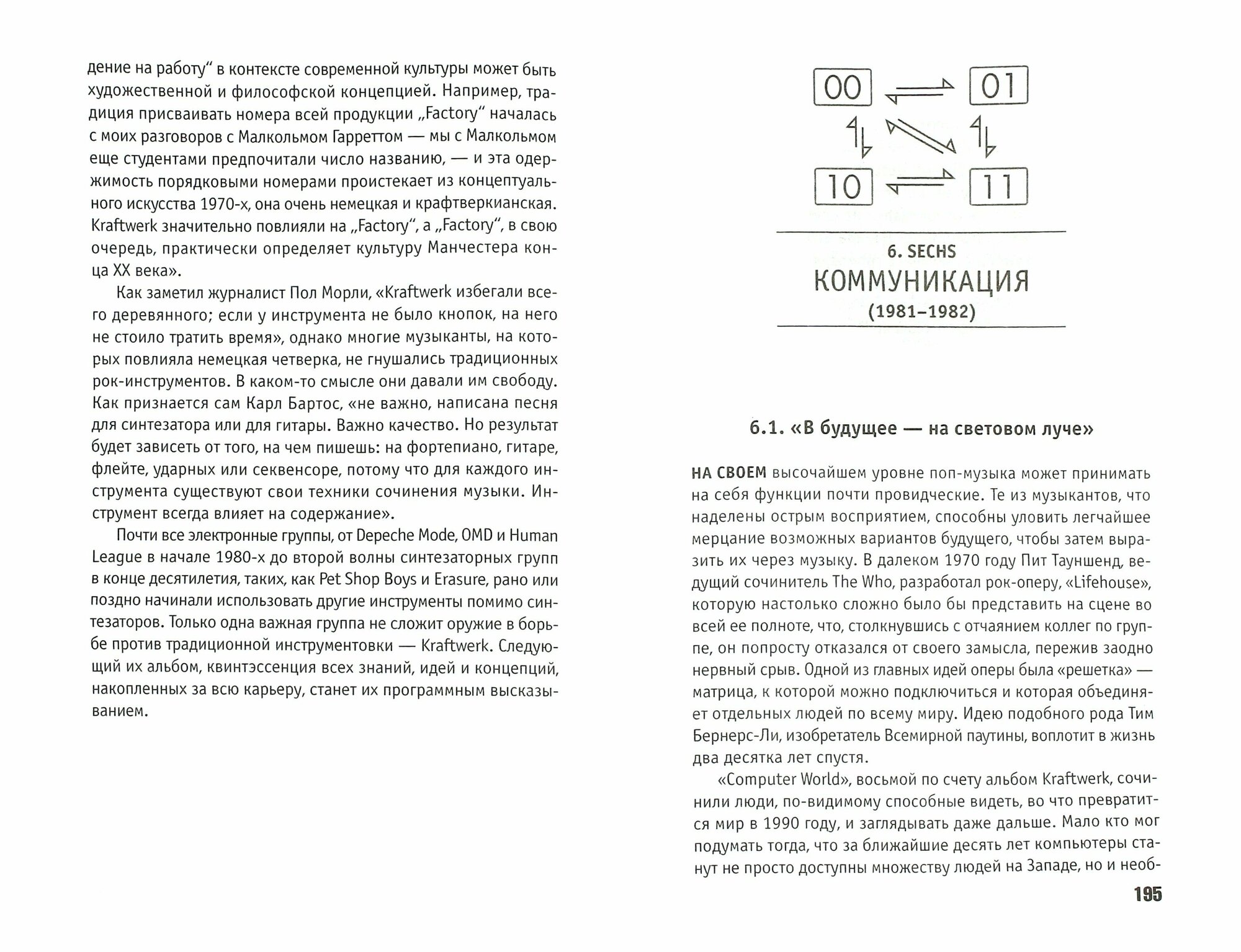 Прочитав книгу "Hacieda как не стоит управлять ночным клубом" через рекомендации узнал и о книге посвященной патриархам мировой электронной сцены, стоявшим у её истоков, в то время, когда электронного звучания еще не было в принципе, можно даже сказать создавшим ее как таковую немецким роботам ( человекам - машинам) Kraftwerk.