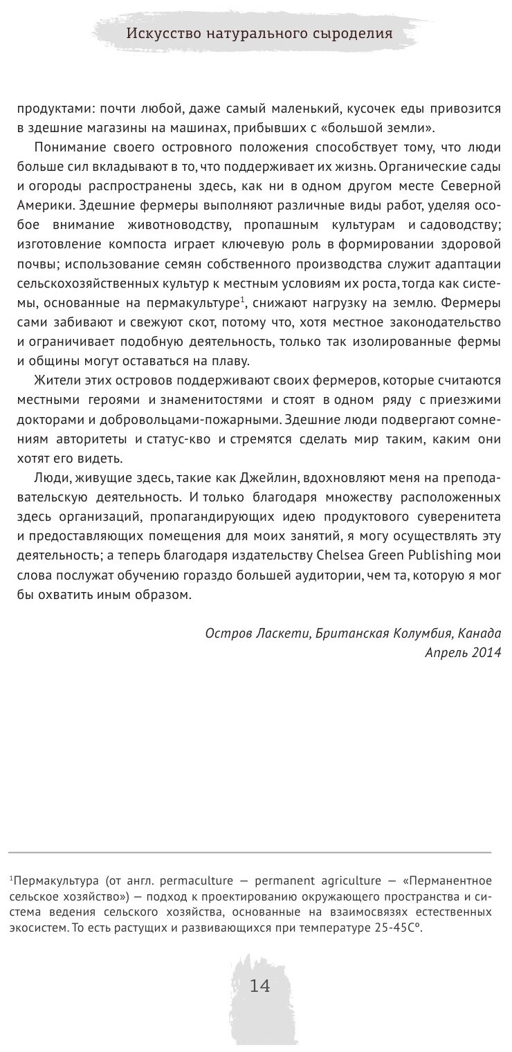 Дэвид Эшер проповедует натуральный способ изготовления сыра, экологичный и основанный на принципах органического земледелия и биодинамики. Эта книга станет замечательным помощником для тех, кто хочет создать домашнюю или небольшую частную сыроварню, и расскажет: как найти хорошее молоко, в том числе сырое; как правильно содержать бактериальные культуры, помогающие созреванию сыра; как сделать самостоятельно сычужный фермент, а также как изготовить хороший сыр без него; как избежать использования пластиковых инструментов и химических добавок; как изготовить традиционным методом порядка 30 различных сыров.