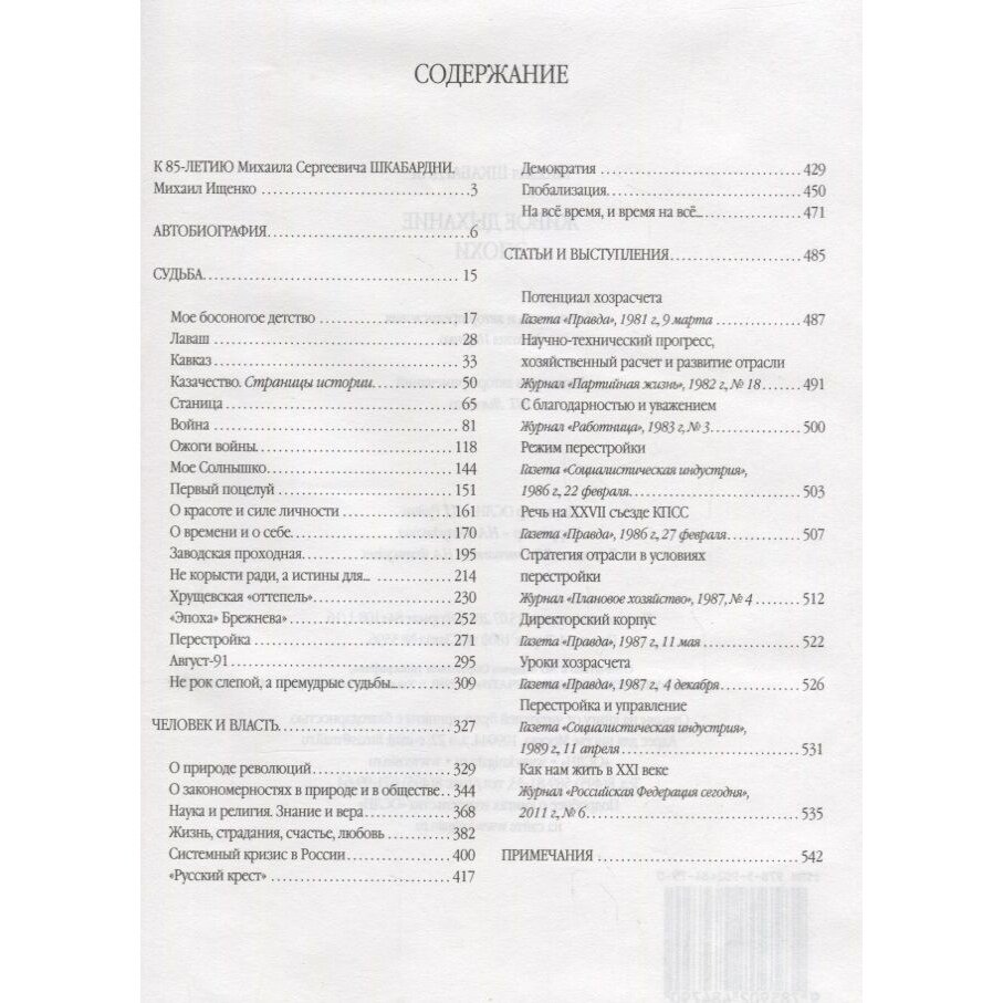 "Живое дыхание эпохи" - эта книга приурочена к 85-летию крупного деятеля отечественной промышленности, министра приборостроения, средств автоматизации и систем управления СССР, в последний период советской власти - Управляющего делами Совета Министров СССР М.С.Шкабардни. Он Герой Социалистического труда, лауреат Государственной премии СССР, доктор технических наук, профессор, член Союза писателей России, автор многих книг, выпущенных в последние годы. Издание, своеобразное по жанру, замыслу и исполнению, включает избранные автобиографические и исторические очерки, статьи с размышлениями о судьбах страны, эксперименте с построением социализма в Советском Союзе, отношениях науки и веры, вечных вопросах человечества - любви, страданиях, счастье... В данной книге обстоятельства частной жизни и общественные события охвачены единым взором. Это дополняет ощущение исторической достоверности и душевной теплоты воспоминаний и размышлений. Исторические события, жизнь страны, жизнь автора очерков и статей и его современников рассматриваются в их совокупности и благодаря этому они обретают особый смысл.